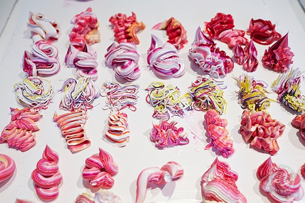 파스텔 톤의 유화 덩어리로 이루어진 정교한 외관과는 다르게, 제작 방식은 누구나 모방하기 쉬울 정도로 간단한데요. 바로 케이크 위에 생크림을 장식하기 위해 사용하는 짤주로 제작됩니다.
