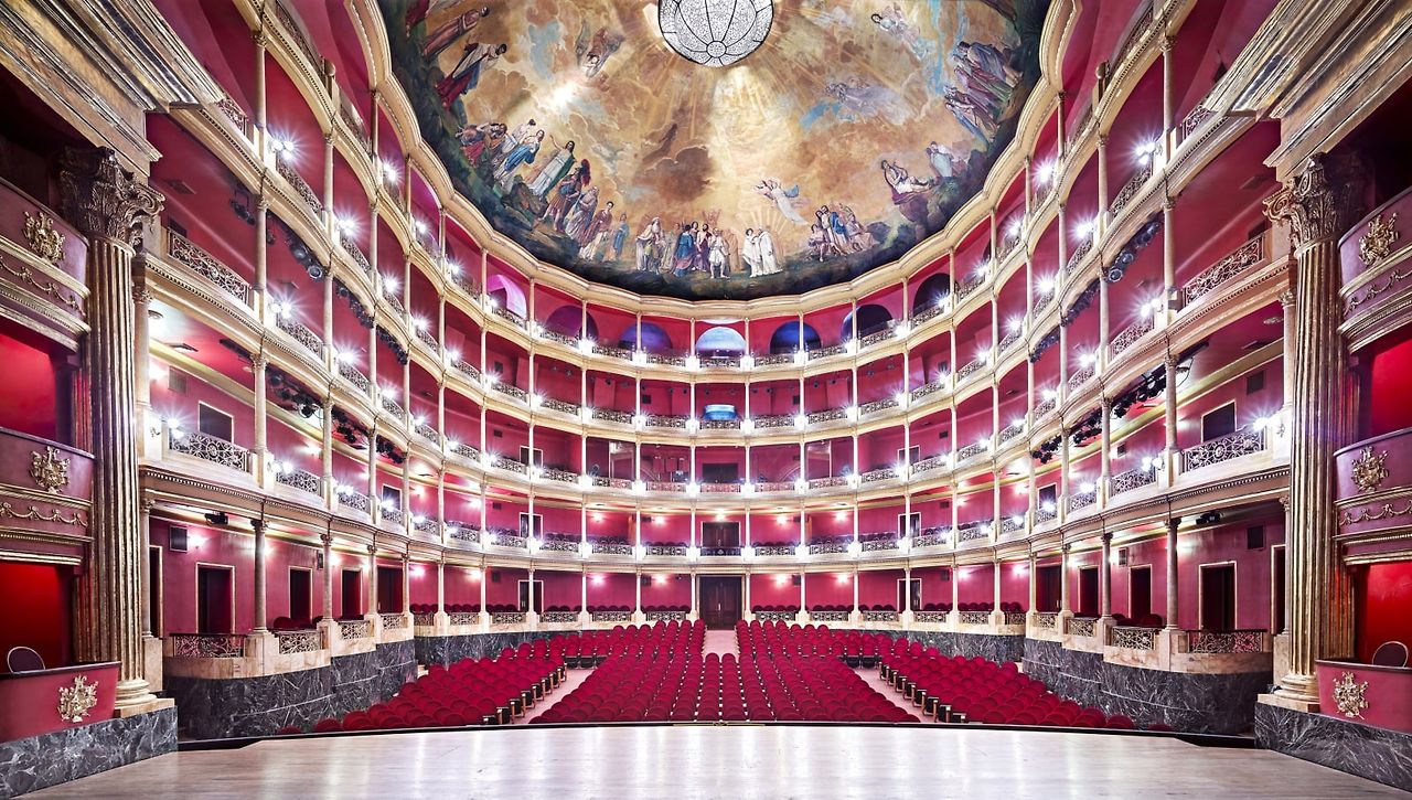그래서 그런지, 아래 공연장을 담은 작품에서는, 텅 빈 공간뿐이지만, 딱딱한 사물들도 마치 살아 숨 쉬는 듯 생동감이 넘치죠. 이러한 전경을 마주 보고 있으면, 왠지 모르게 공연이 시작되기 전 관객들이 좌석에 앉아 기대에 부풀어 소곤소곤 얘기를 하고 있을 법한 모습이 연상됩니다.