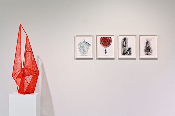 전시장에 들어서자마자 의자를 타고 천장까지 올라가는 붉은 실타래를 물끄러미 바라보다 보면, 그녀의 정교함에 감탄이 절로 나오게 됩니다.