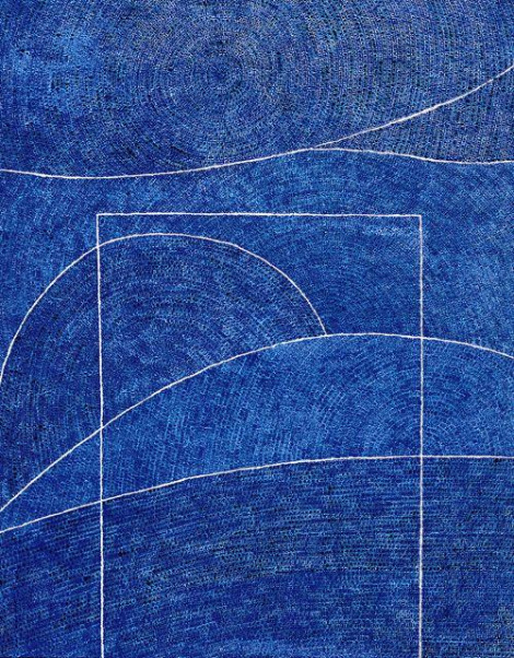 또한 위의 작품을 잘 살펴보면, 다른 뉴욕시대의 작업들과는 달리, 작품 가운데의 하얀 곡선이 여러 획을 이루면서, 산, 언덕, 달과 같은 형상들을 이루고 있는 것처럼 보입니다. 보통은 이 하얀 선이 없거나, 네모 형태로 그려져 있는데, 특히 '환기 블루'라는 별칭이 따로 있을 만큼, 김환기 화백의 그림이 전반적으로 푸른 색감을 띄고 있어서, 더욱 그렇게 보이는 것 같습니다.