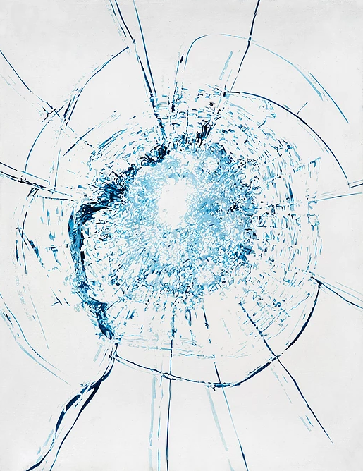 그는 같은 연작을 유리가 아닌 회화 작업으로도 선보이는데요, 아무래도 유리는 투명한 재질이라, 총알이 뚫고 나간 흔적을 표현하는 데 한계가 있기 때문에, 자오자오는 회화를 통해 그 흔적의 크기를 확대하고, 각기 다른 색상을 사용해 깊이를 다층적으로 표현하면서, 관객에게 총알이 뚫고 지나간 자리를 더 생생하게 전달합니다.