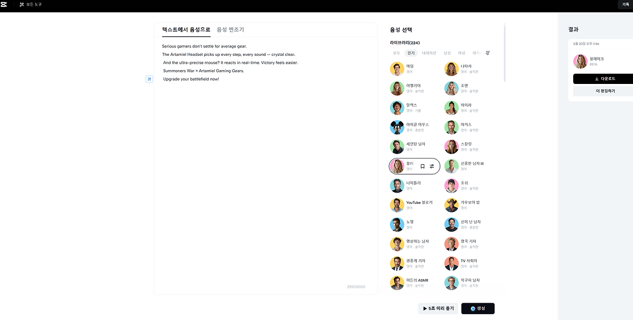 ElevenLabs, Capcut AI 보이스로 자연스러운 음성 오디오 생성