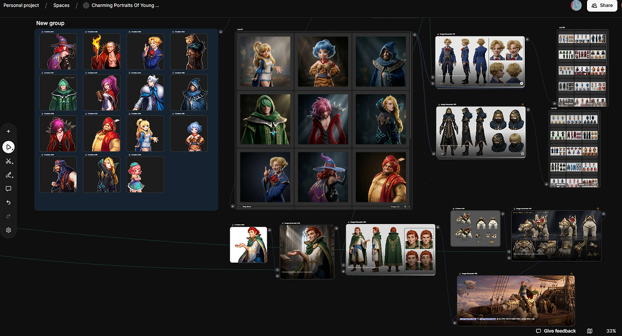 Freepik Space는 노드 기반 작업으로 생산성과 확장성 모두 높게 확보할 수 있는 것이 강점입니다.