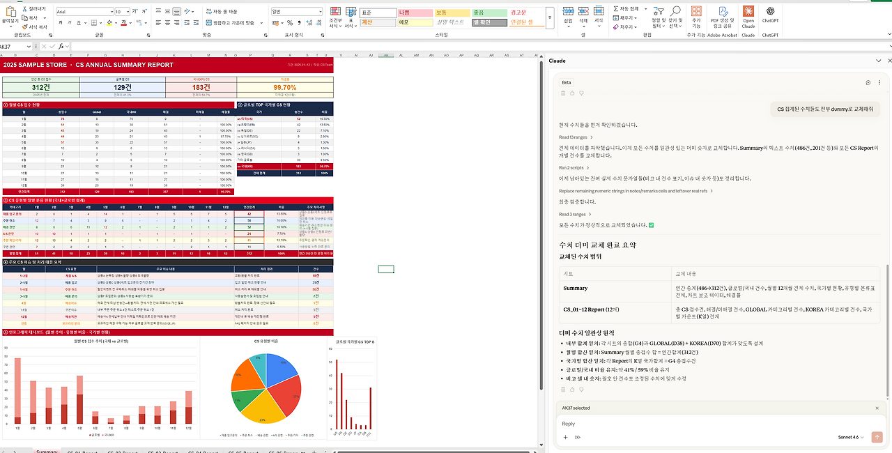 Claude Excel로 연간 CS Rerpot 대시보드 5분컷