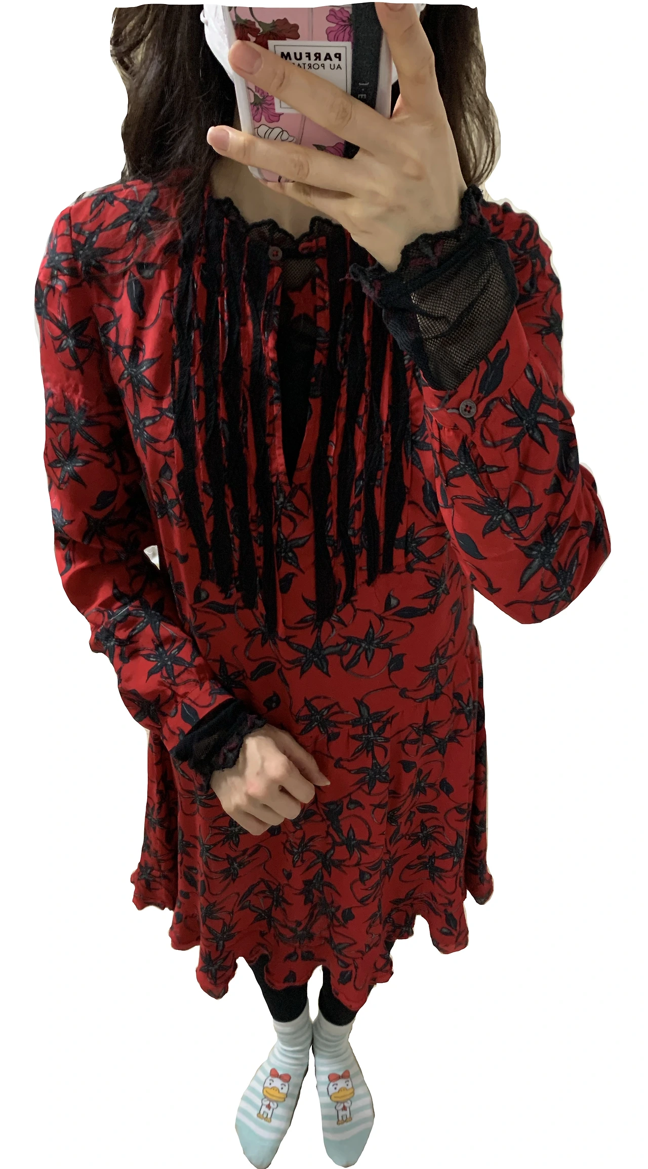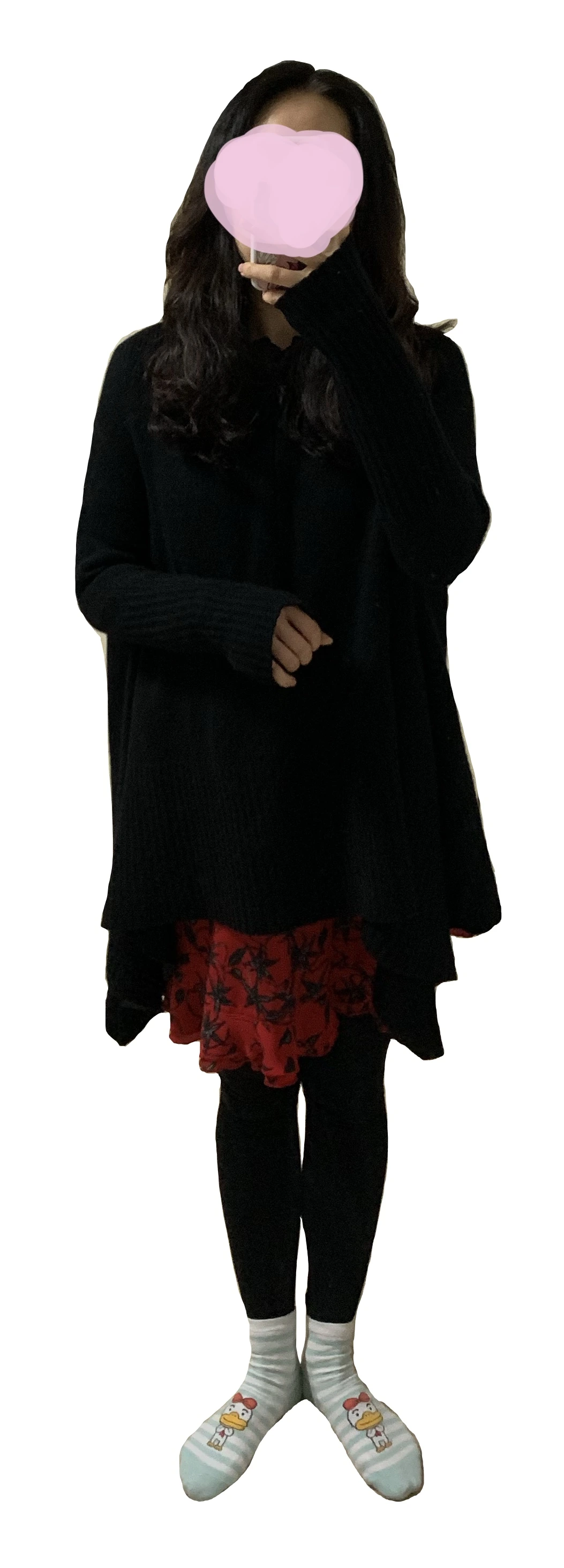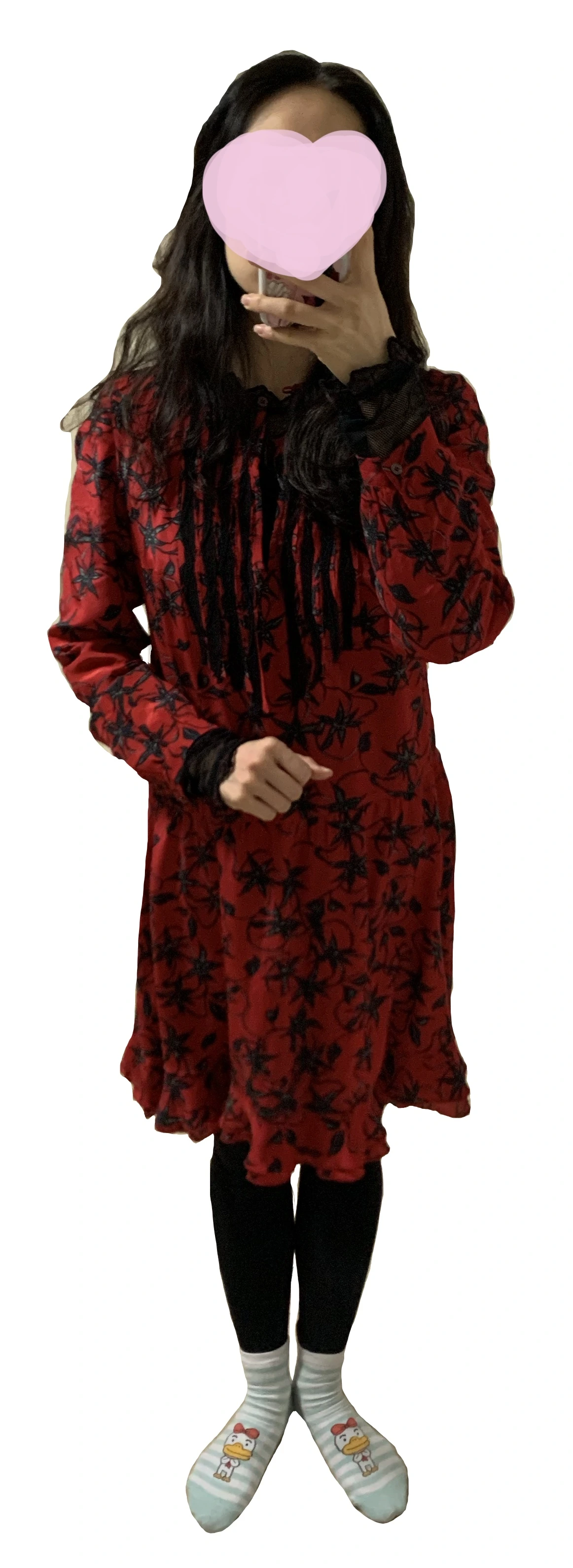 레드 원피스와 블랙 풀오버