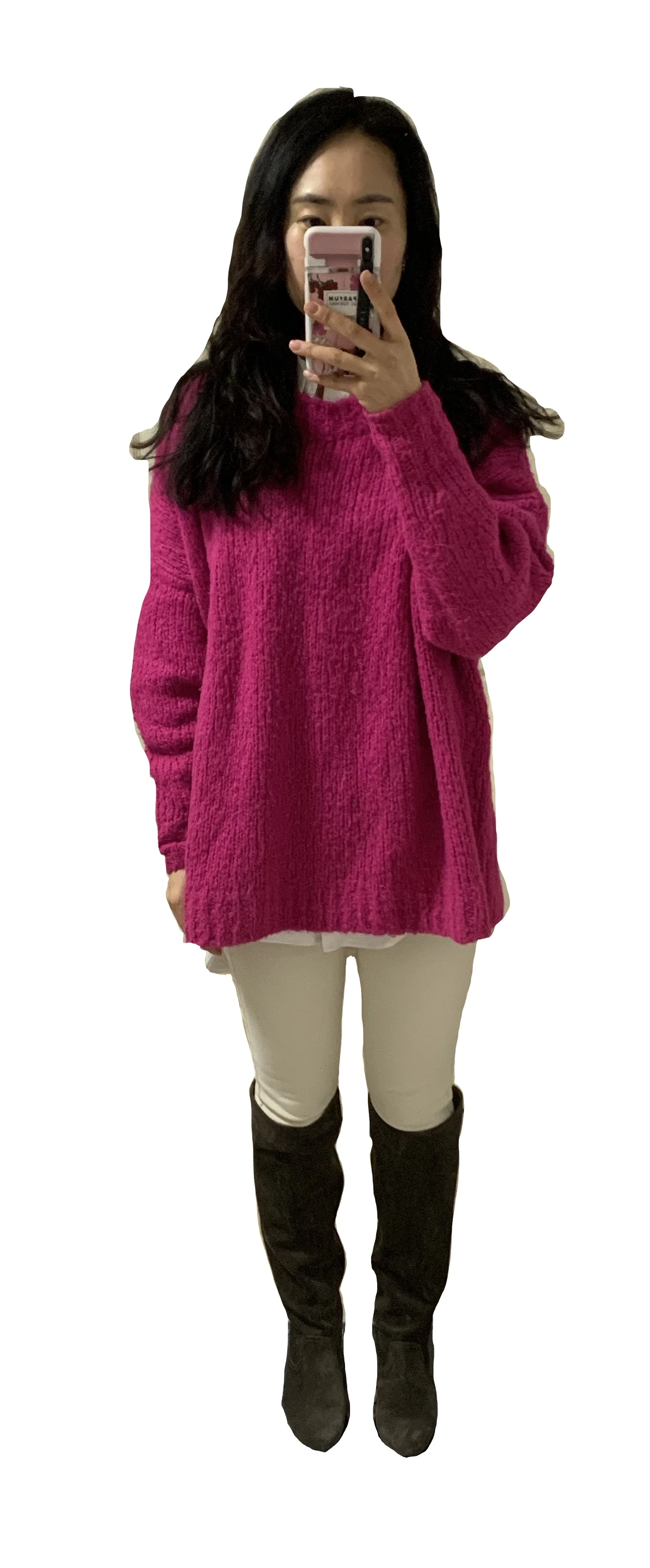 셔츠: INDIBRAND. 풀오버: Isabel Marant. 바지: Guess. 부츠: JIMMY CHOO.