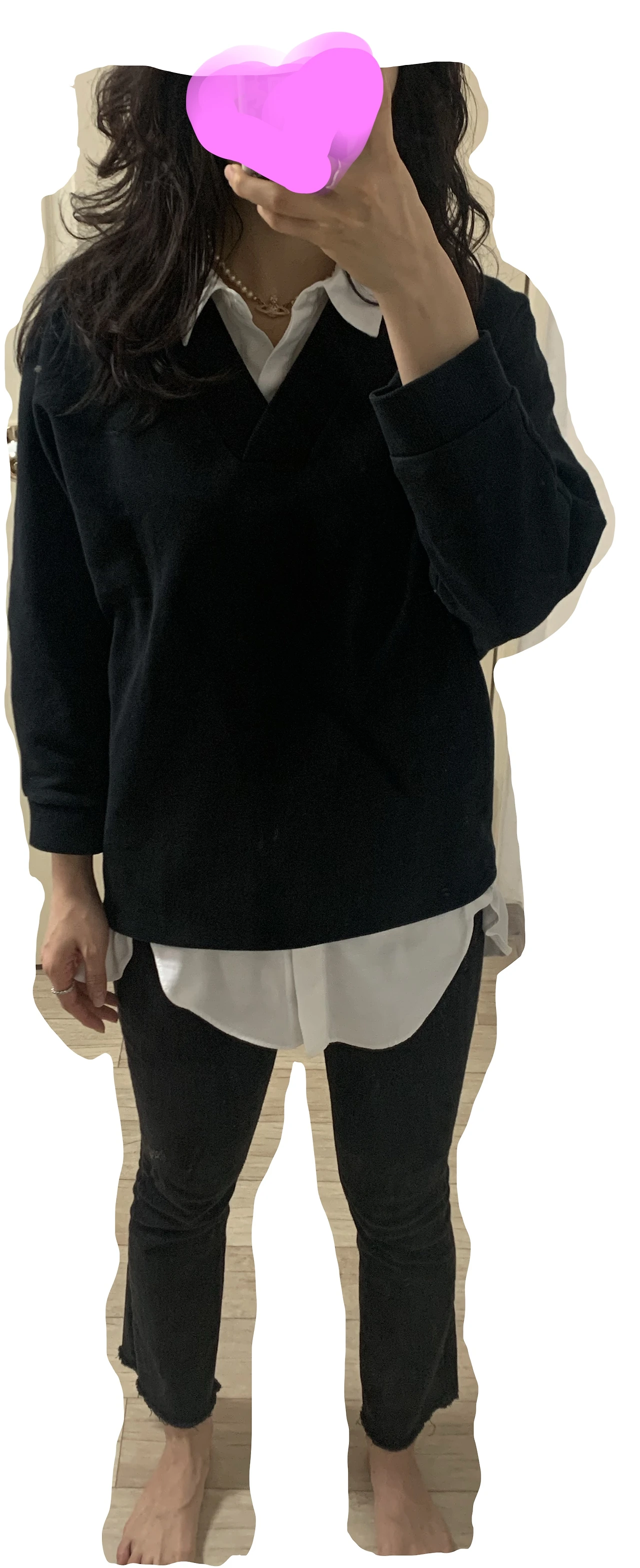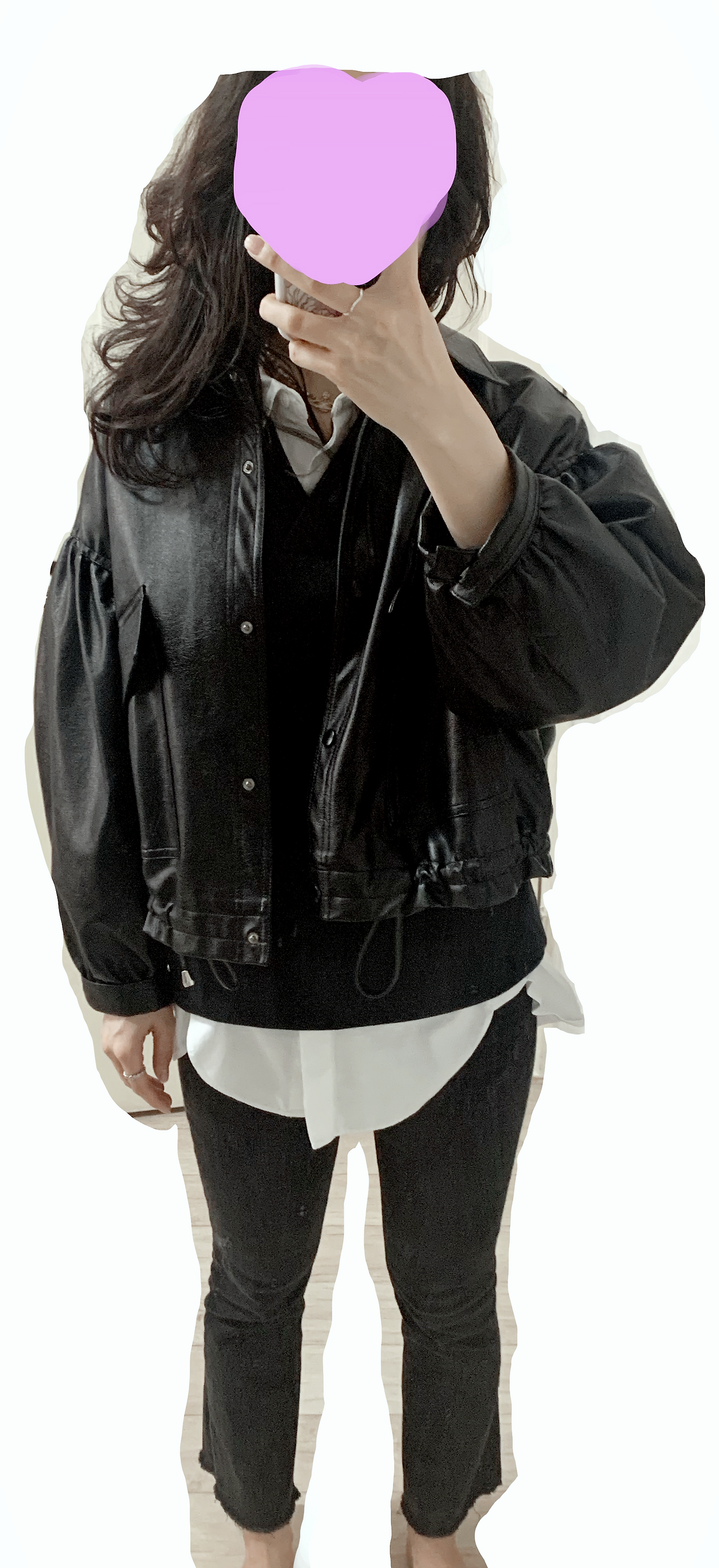 가죽재킷: 2021. 맨투맨: 2017. 셔츠: 2019. 청바지: 2019. 목걸이: 2019.