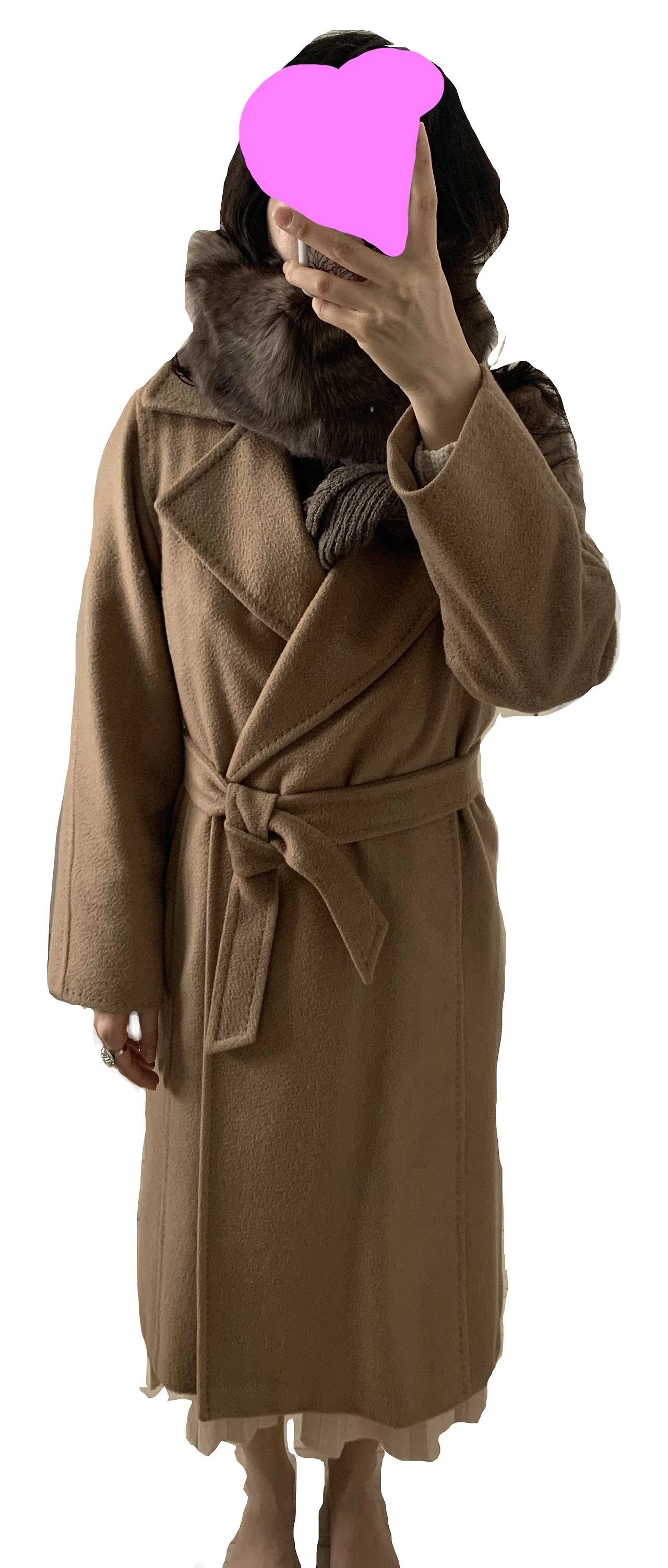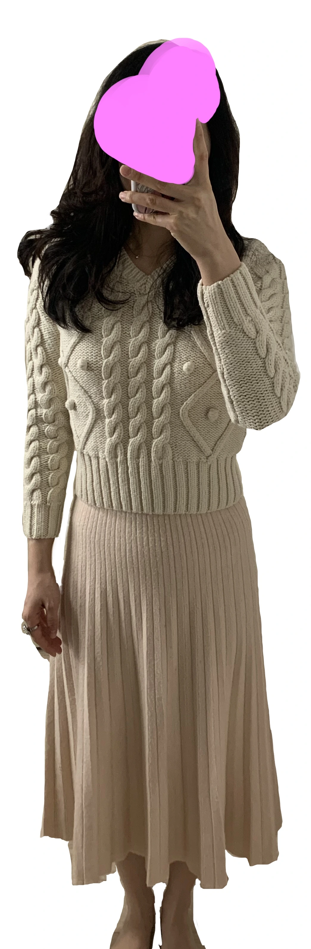 상의 니트: 2014. 니트 스커트: 2021. 코트: 2020. 목도리: 2015?