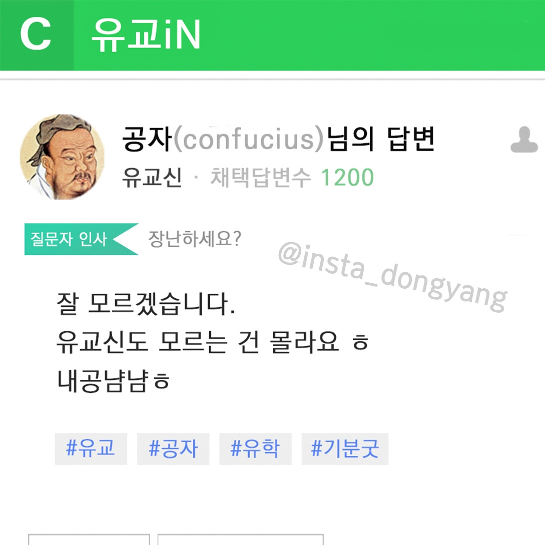 공자는 자로에게 '아는 것'이 무엇인지 알려준다. 지식을 달달 외우는 것? 남들 앞에서 멋있게 가공해서 말할 수 있는 것? 글로 옮겨 쓸 수 있는 것? 아니다. 알면 안다고 말하고, 모르면 모른다고 솔직히 인정하는 것, 그게 공자가 말하는 진짜 '앎'이다. 공자가 살던 시대에도 이런 지식 서비스가 있었다면, 공자는 분명히 아는 척하는 것보다는 '차라리 내공냠냠'을 택할 것이다. 그림 속 공자의 레벨은 '유교신'이다. 꽤나 많은 내공을 모아 높은 레벨까지 올랐다. 저 정도 레벨이 하는 말이라면 누구든 다 믿을 것이다. 얼마든지 '아는 척'할 수 있었지만 공자는 '내공냠냠'을 택했다. '아니, 유교신도 모르는 건 모른다고!'. 사회적 지위가 높을수록, 학식이 높거나 나이가 많을수록, 우리는 스스로의 부족과 무지를 인정하기 어렵다. 그것을 인정하는 것이 진정한 배움의 시작이다. 내공냠냠.
