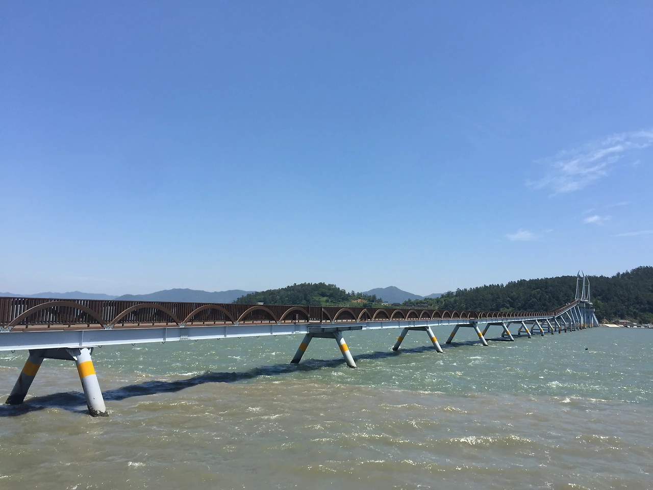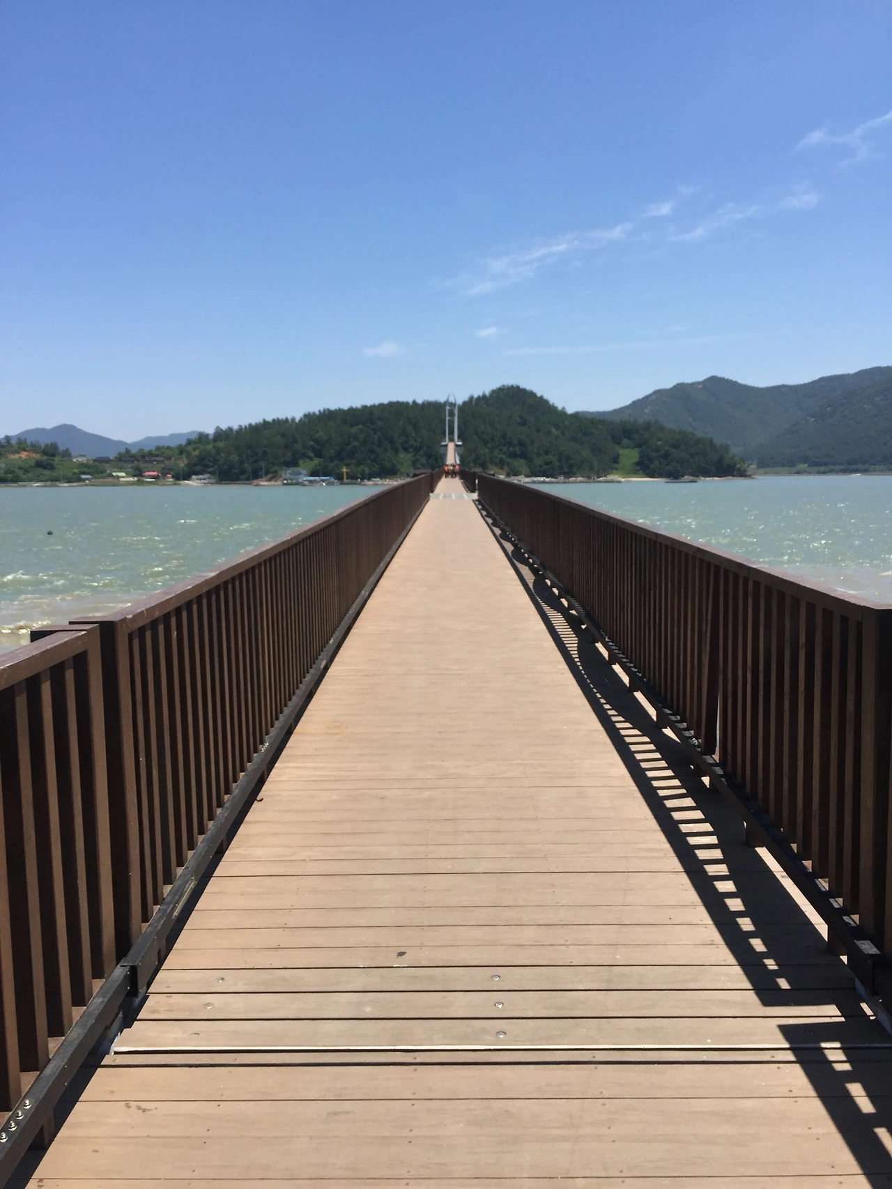 그런데 이상하다. 출렁다리는 절대 출렁이지 않는다. 튼튼하게 고정되어 있어 안전하기만 하다. 그렇다면 왜 그 이름이 출렁다리인지 의구심이 안 들 수 없다. 이유야 어쨌든 다리를 건너는 동안 어찌나 바람이 강하게 부는지, 내 머리카락은 쉴새 없이 출렁 거렸고, 바다와 산과 하늘을 보며 내 마음도 한 껏 신이나 출렁 거렸다. 그러니 이 다리가 최소한 오늘 나에게 만큼은 충분히 이름값을 했다는 것에 의의를 두기로 한다.