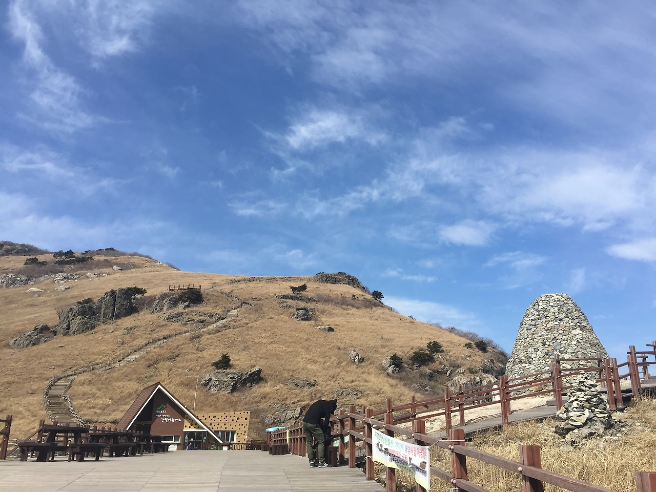 간월재에 있는 휴게소는 그 위치나 모습이 산과 잘 어우러져 한폭의 그림같다. 테이블과 휴게시설이 잘 구비되어 있어 대부분 이곳에서 점심을 먹게 된다. 나도 출발할 때 사온 김밥 한 줄과 이곳에서 구입한 컵라면을 함께 먹었다. 옆 테이블의 한 무리의 아저씨 아주머니들은 회를 사와서 드실정도로 푸짐한 만찬을 즐기고 계셨다. (산의 정상에서 바다의 날것을 먹는 기분은 어떨까? 군침이 줄줄...)