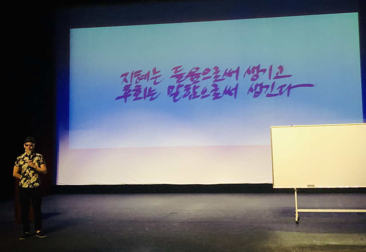 아내의 배려로 강풍을 뚫고 강연장으로 향했다. 태풍 때문인지 사람은 많이 모이지 않았다. 덕분에 시간을 맞춰 갔음에도 앞쪽 자리에서 집중해서 강연을 들을 수 있었다.