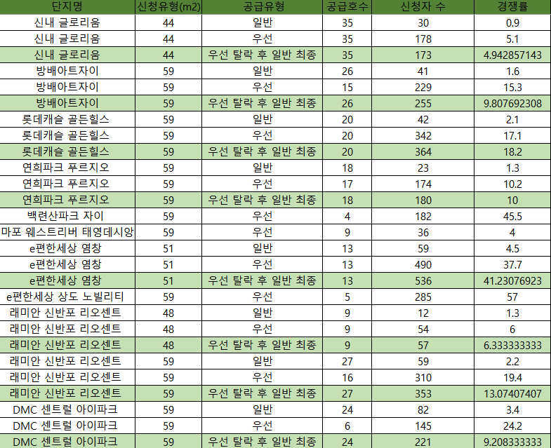 마포자이 3차, 즉 직장이 어디든지 이동이 편해서 선호되었던 그곳은 28명 모집에 3081명이 지원하였다.