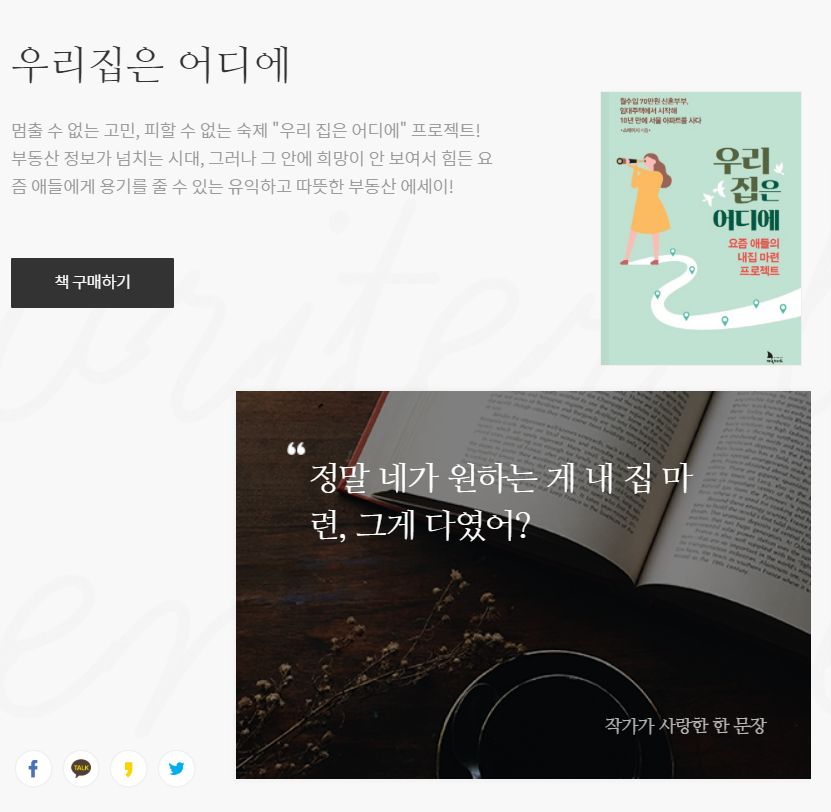 사회적 이슈나 현상을 에세이 형식으로 다루는 Social essayist 입니다. 출간작으로는 <우리 집은 어디에>, <나만 친구가 없나?> 가 있습니다.