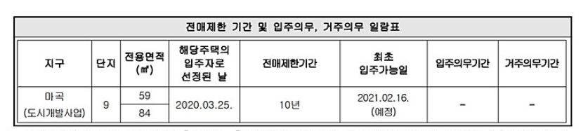 이 부분은 모두의 관심사 였다. 분양가와 전매제한, 실거주의미기간! 그런 면에서 마곡 공고는 지켜보던 모두를 놀라게 했다. 분양가는 59형기준 5억언저리, 84형 기준 6억 얼마이다. 현 시세의 60%정도로 공급된 것이므로 공공의 법칙 상, 거주의무기간이 5년이 나와야 할 것 같은데 그 부분을 없애버렸다. 분양가 상한제가 적용되는 공공택지 그리고 4월부터 시작한다는 민간택지 분양가상한제에 전매제한 10년에 실거주 5년을 넣어서 투기를 방지할 거라던 했던 것 같은데, 그럼 앞으로 다른 사업장에도 분양가상한제를 해도 전매 10년에 실거주 없음으로 예상해도 되는 걸까? 정책에 일관성이 있어서 실수요자들이 예측가능한 장이 오면 좋겠다.