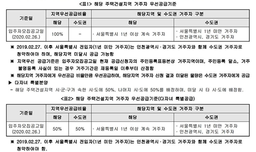 서울시 1년이상 거주자가 우선권이 있고, 다자녀의 경우만 서울시민이 아닌 경우도 청약이 가능하다.