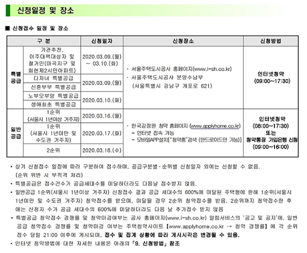 또한 특이사항은 특별공급은 SH공사에서 신청하고 일반공급은 다른 사이트라니 눈여겨 보시길 바란다.