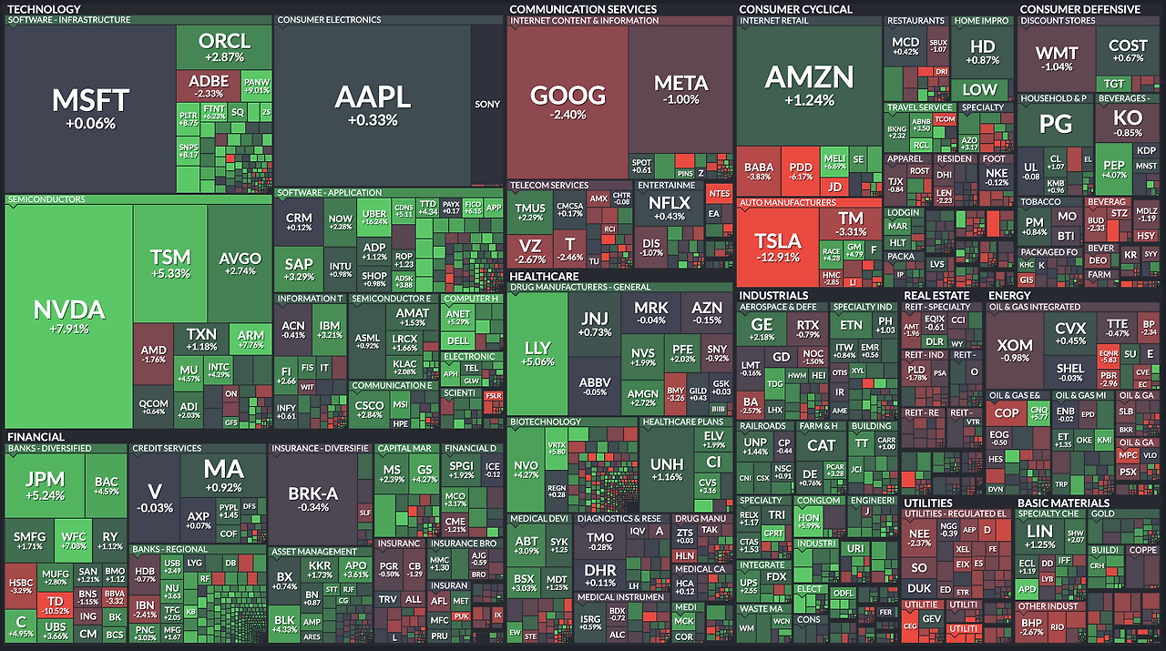 - 엔비디아는 블랙웰 판매 호조로 시장의 기대감을 한 몸에 받고 있어 개별 주식 중에서는 가장 좋은 성과를 내고 있습니다.