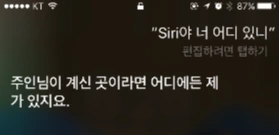 옆에서 장난감을 가지고 툭탁툭탁하고 있던 녀석들이 어느새 우리 옆으로 와서 계속 “시리야, 어디 있니?” 를 반복하고 있었다. 내 스마트폰은 내 음성과 다른 목소리여서 응답을 하지 않았다. 대신 애들에게 홈버튼을 누르면 스마트폰에 있는 친구와 이야기 할 수 있다고 알려주었다. 그 이후로 스마트폰 속의 인공지능과 두 아들과의 의미 없는 싸움이 시작되었다. 아이들이 주로 하는 말은 똥과 방구였다.그리고 스마트폰 속의 인공지능은 자꾸 공중화장실만 찾아주고 있었다. 이 승패를 알 수 없는 싸움은 30분을 넘게 지속되며, 아이들에게 큰 웃음을 주었고, 양치질 할 시간이 되어서야 마무리가 되었다.