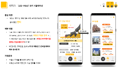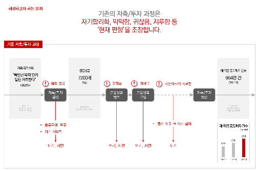 이를 위해 우리가 선택했던 방향은 '부동산 Self 설계' 서비스였다. 증권 및 펀드 투자에 대한 서비스들은 증권사와 금융사에 많이 배포가 되어 있고, 이들과의 차별성 및 경쟁우위를 가져가기는 어렵다고 생각했다.