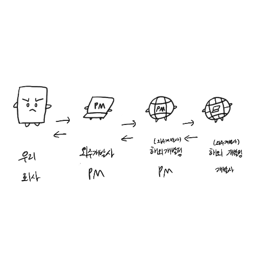 또한 진행하면서 문제점들도 있었다. 해당 외주회사는 개발팀이 해외에 있었다. 그렇기에 소통을 하는데에 시간이 너무 길었다. "우리 회사 - 외주 개발사 영업 팀장/PM - 해외 개발팀 PM - 해외 개발팀 개발자"에게 전달되는 구조였다. 이런 구조의 방식이 커뮤니케이션의 딜레이를 발생시킬 줄 알았으면, 해외에 개발팀이 있는 외주 개발사를 선택하지는 않았을 것이다.