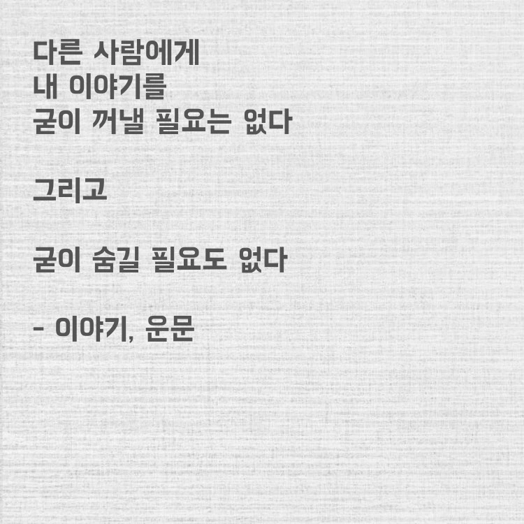 다른 사람에게내 이야기를굳이 꺼낼 필요는 없다그리고굳이 숨길 필요도 없다- 이야기, 운문