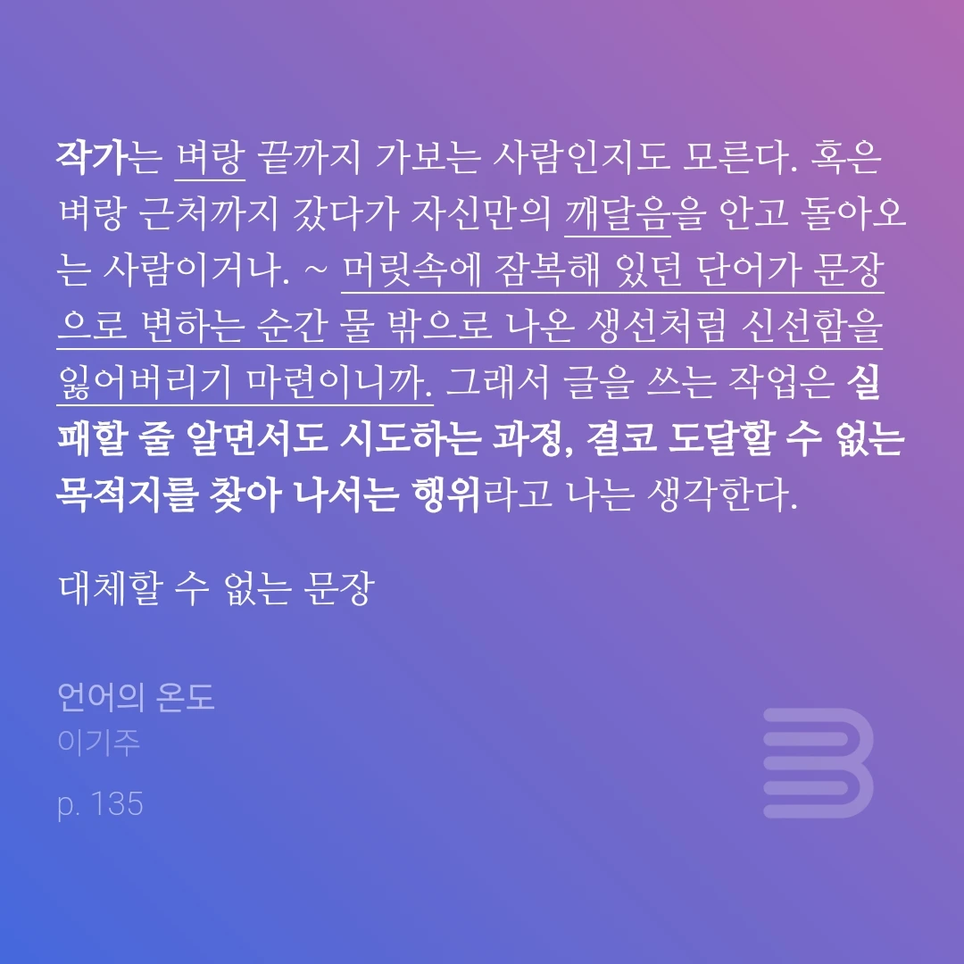 아무리 보잘것없는 몸뚱어리의 소유자라 할지라도우주만 한 크기의 사연 하나쯤은 가슴속 깊이 소중하게간직한 채 살아가기 마련이다. <언어의 온도> 우주만 한 사연 p 63