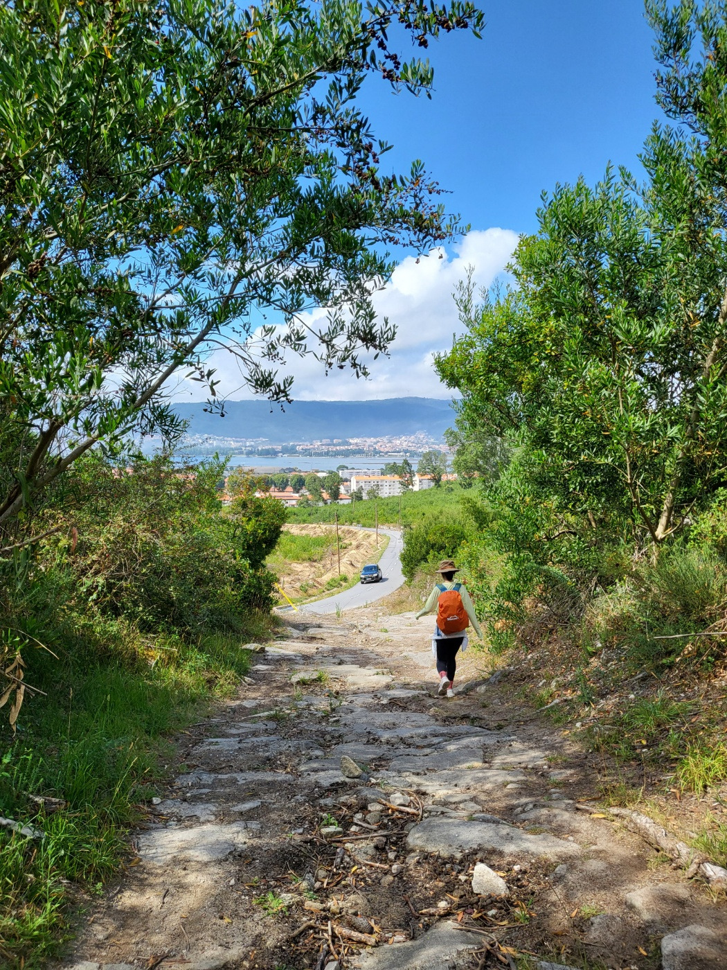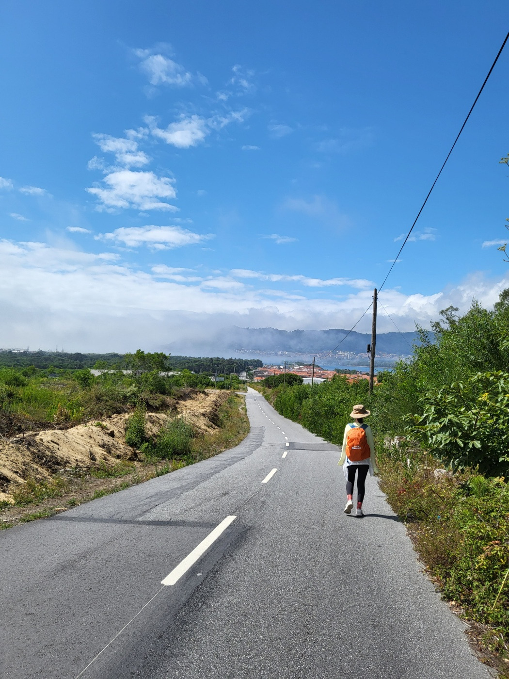 비가 아주 약하게 흩날려서 우비는 입지 않고 출발했다. 중간에 빗줄기가 조금 굵어진다 싶을 때마다 준비해 간 작은 우산을 잠깐씩 폈다 접었다를 반복했다. 우리는 비가 더 올까 봐 날씨만 걱정했지 오늘 걷게 될 코스가 어떤 길인지는 전혀 생각해 보질 않았다. 첫날은 도시길, 둘째 날은 해변길, 셋째 날은 찻길과 돌길이었는데, 오늘이 가장 힘든 오르막길과 산길이라는 걸 우린 나중에서야 알게 되었다.