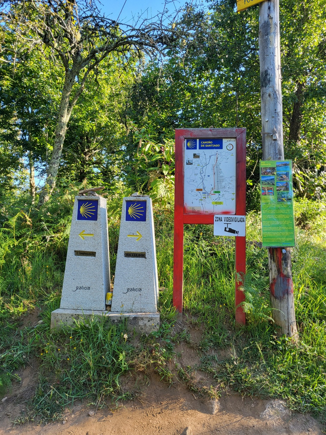 '오 포리뇨'로 가는 길은 아직 끝나지 않았다. 조개껍데기를 매달고 산을 내려와서 좀 걷다 보니, 양쪽으로 갈라지는 길을 설명한 이정표가 보였다. 보아하니 거의 직선으로 뻗어있는 길과, 엄청 멀리 둘러서가는 두 개의 길 중 하나를 선택하라는 뜻 같았다.