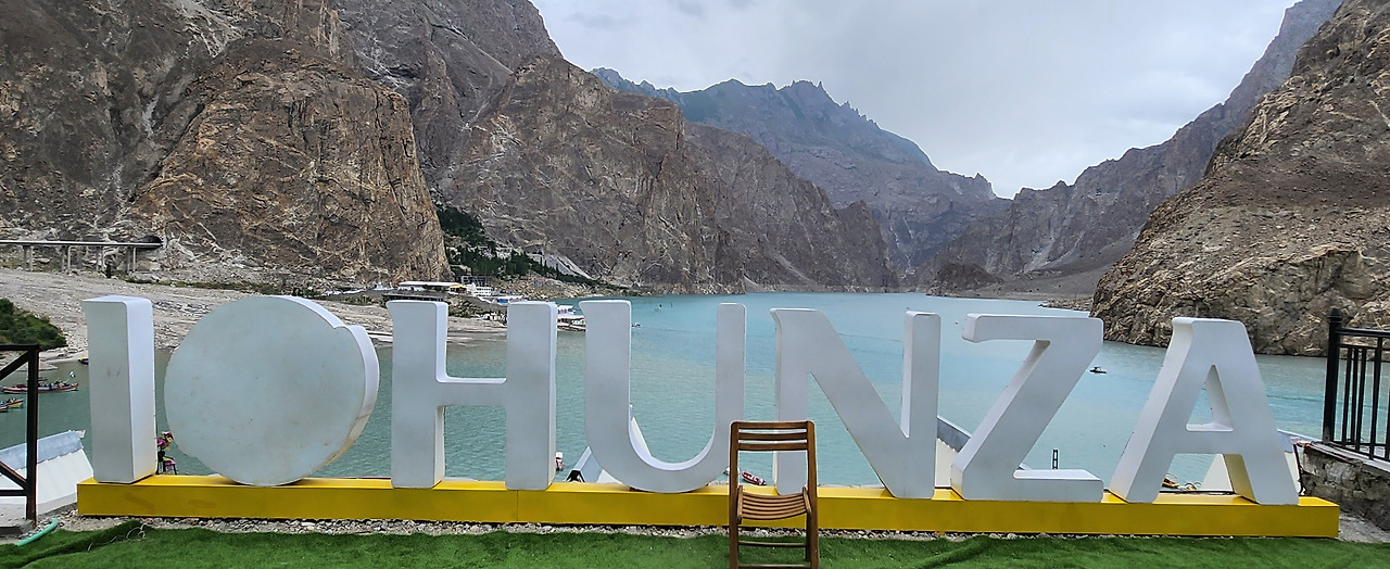 그 곁, 훈자 피크는 스카프처럼 구름을 걸치고 있다.