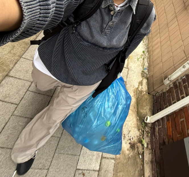 그렇게 몇 번을 더 가다가 한동안 일정이 바빠져 페트병을 반납하러 가지 못하고 있었다. 그 사이 페트병 반납 체계에는 변화가 생겨났다. 오랜만에 시간이 생겨 그동안 쌓인 페트병을 모아서 주민센터에 간 날이었다. 사무실 문 앞 입구에 그전에는 보이지 않던 책상과 젊은 남자분이 앉아계셨다. 처음 페트병을 반납하러 왔을 땐 명부에 세명 정도의 이름이 적혀있다가, 두 번째엔 다섯 명쯤이었다. 시간이 흐른 지금은 참여자가 열명 이상으로 늘어 좀 더 편리한 진행을 위해 페트병 반납 상주 담당자와 테이블이 생겨난 것이다. 이제는 페트병의 개수는 세지 않고, 이전처럼 명부에 이름과 페트병 개수를 적으면 종량제 봉투를 주셨다. 그리고 페트병을 담은 봉투는 저기 뒷마당에 던져놓고 가라고 다소 시니컬하게 얘기하셨다. 좀 더 간편하고, 빠르게 교환이 가능했으나 한편으로는 사람들이 정직하게 개수를 지키지 않으면 어쩌나 하는 오지랖 섞인 걱정도 조금 들었다. 그러나 여긴 한국이다. 오히려 스스로 더 예민하게 개수와 규칙을 지키는 것이 한국인의 미덕.이라는 생각을 하며, 걱정은 날려버리고 가볍게 룰루랄라 주민센터를 걸어 나왔다.