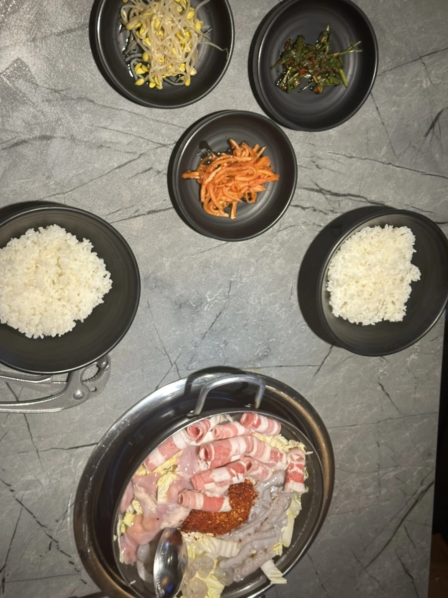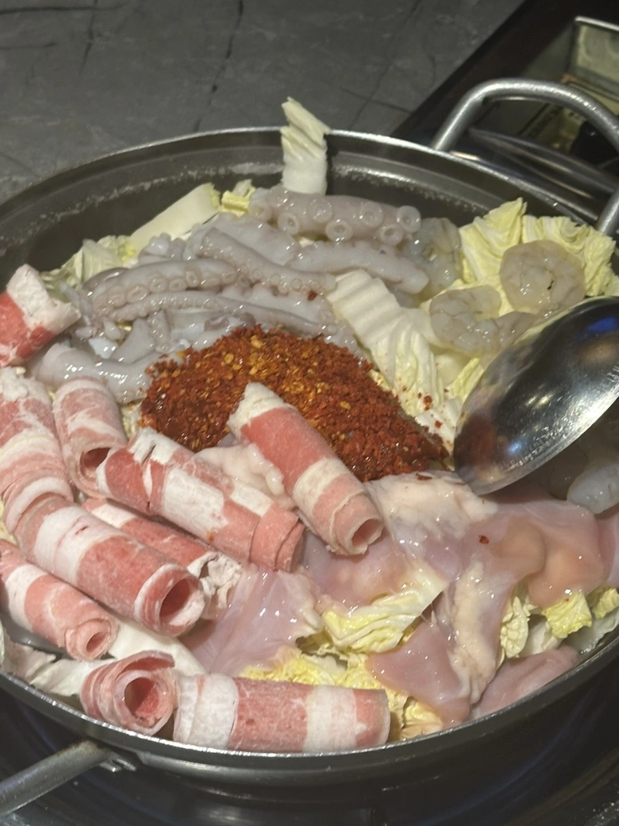 저는 낙곱새 2인분 (소)에 차돌을 추가한 세트였어요. 세트를 하면 밥이 포함되어서 함께 나오고, 약간의 곱창 사리도 추가한 상태랍니다. 이 정도가 기본 1인분 먹는 사람 둘이 먹기에 딱 맞은 양이라 사리 추가 없이 먹으면 아쉬울 수 있어요.