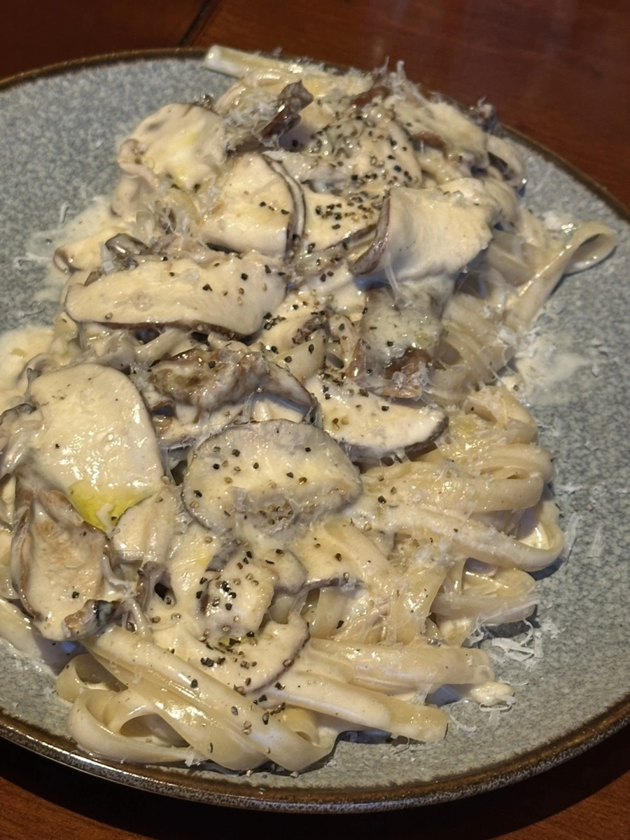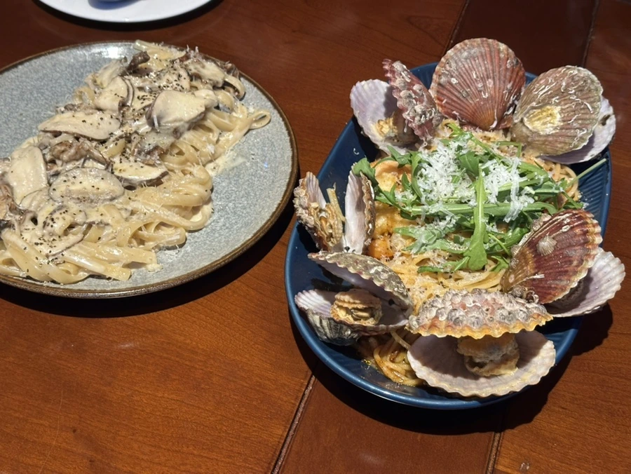 첫 번째로 나온 메뉴는 버섯 크림 파스타. 이 메뉴가 가장 후기가 좋았던 메뉴 중 하나인데, 정말 맛있더라고요. 버섯의 향이 아주 풍부하고, 또 강하기 때문에 버섯을 못 드시면 먹기 어려울 수 있어요. 하지만 꾸덕한 크림소스와 버섯, 그리고 파스타면이 참 잘 어울리더라고요.