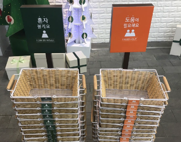 몇 년 전에 등장했던 ‘추천을 받고 싶어요’와 ‘혼자서 구경할게요’를 바구니에 써두고 선택할 수 있게 만든 어느 화장품 샵의 이미지를 보고는 “이거 완전 날 위한 거다!”라고 외쳤을 정도니.. 물론 친절함과 자세한 설명이 결코 싫지 않고 반가운 마음이지만, 그냥 그걸 잘 못 견디겠는.. 천천히 아주 천천히 혼자 고심하며 고민하고 싶은 마음이 훨씬 크다고 하면 이해할 수 있을까..?