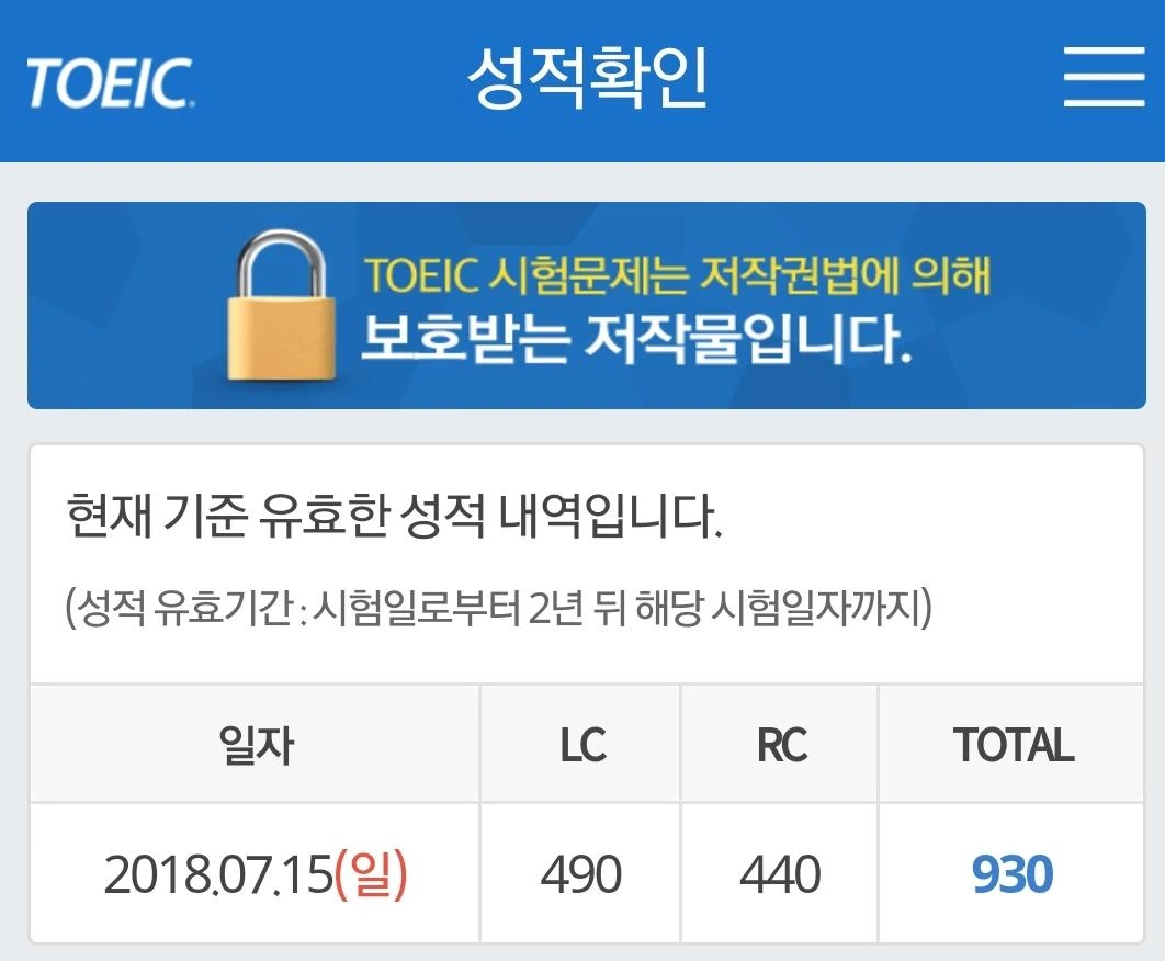 퇴사 전, 영어 성적이 필요해서 4년 만에 토익 시험을 쳤다. 새로 바뀌었다고 하는 신 유형만 파악하고 시험을 쳤는데 930점을 받았다. 물론 높은 성적은 아니지만 준비기간이 없었음에도 10분 정도 시간을 남기고 문제를 풀었다는 것은 영어 공부를 생활화한 덕분이라고 생각한다.