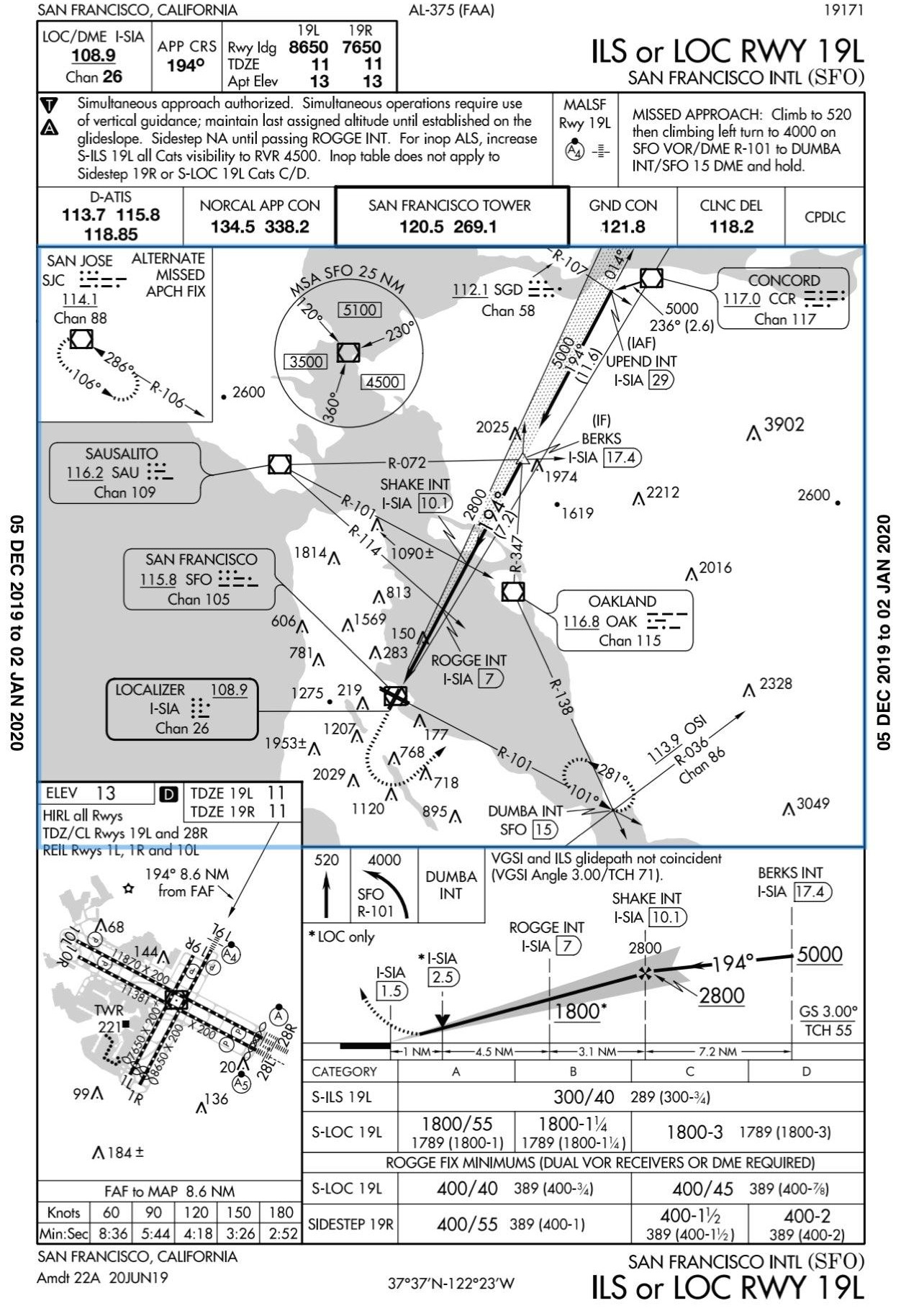 계기에만 의존하여 착륙할 수 있게 하는 계기 차트다. 이 차트를 통해 ATC와 교신하며 약속된 절차에 따라 안전하게 착륙할 수 있다.