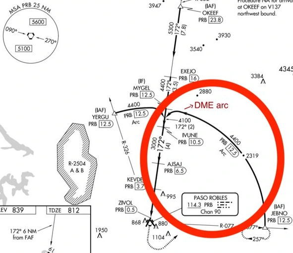 주로 혼잡한 공항에 DME arc가 depicted 되어 있다. Enrount 항로에서 보다 자연스럽게 instrument approach를 하기 위한 절차라고 보면 된다.