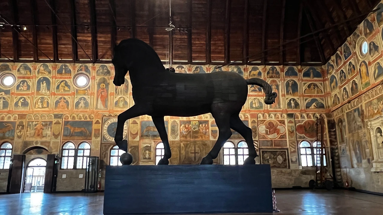 드높고 드넓은 홀 서쪽에는 검은 기마상이 서 있다.