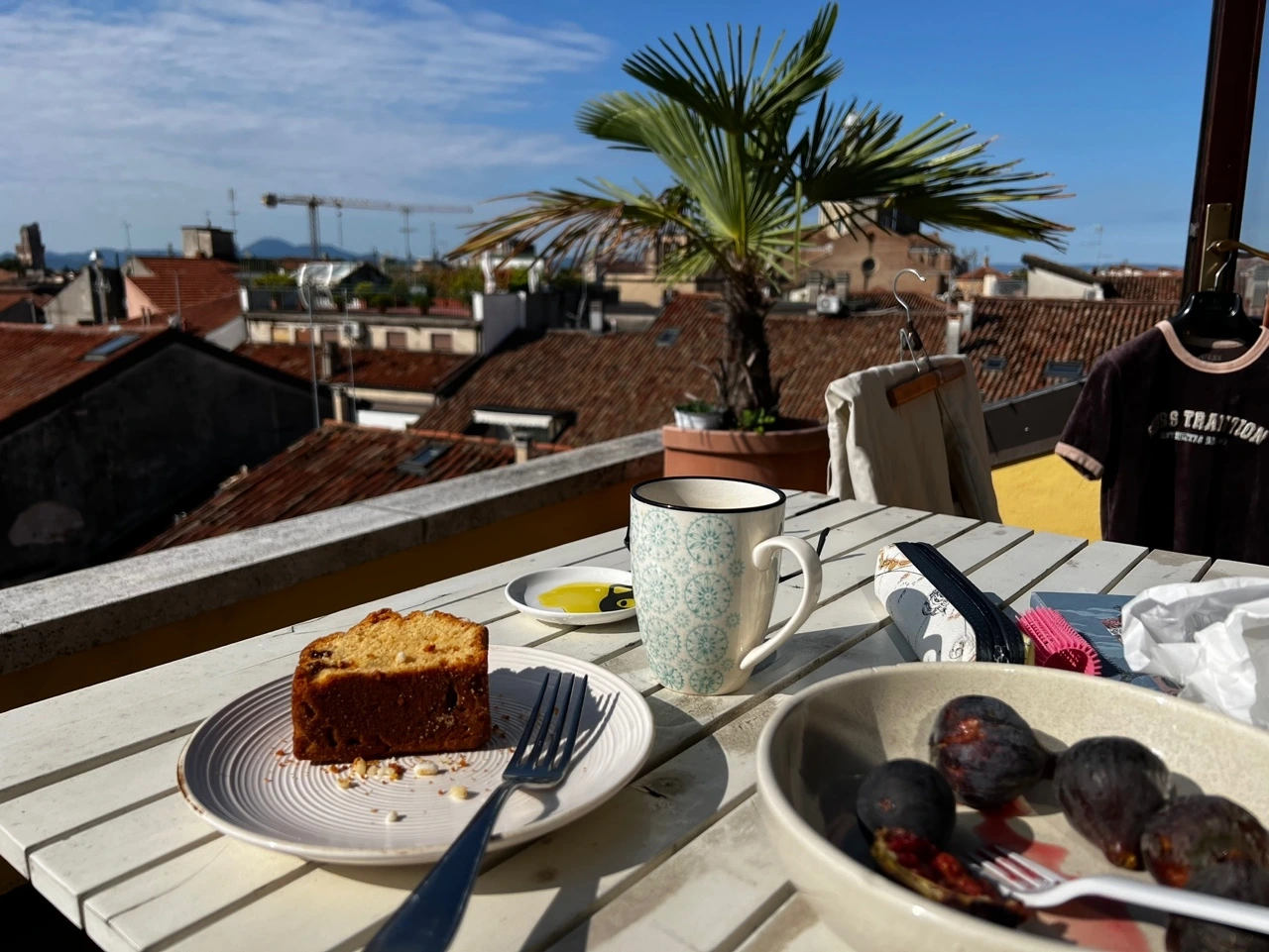 갓 구운 빵과 커피를 사들고 돌아왔다.