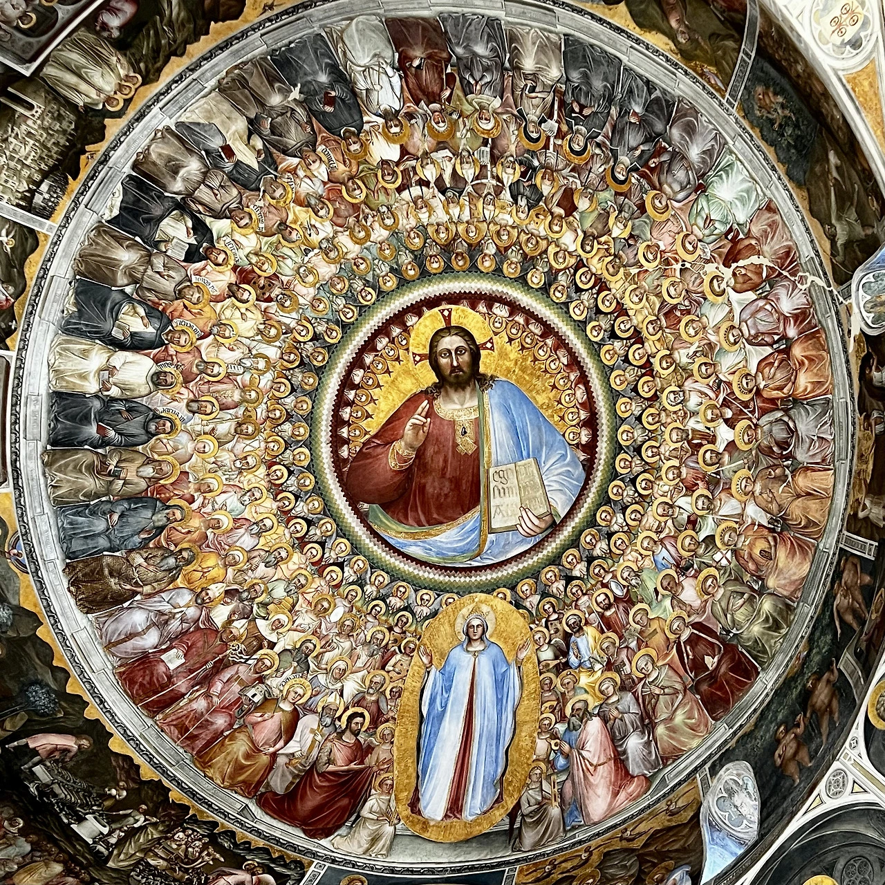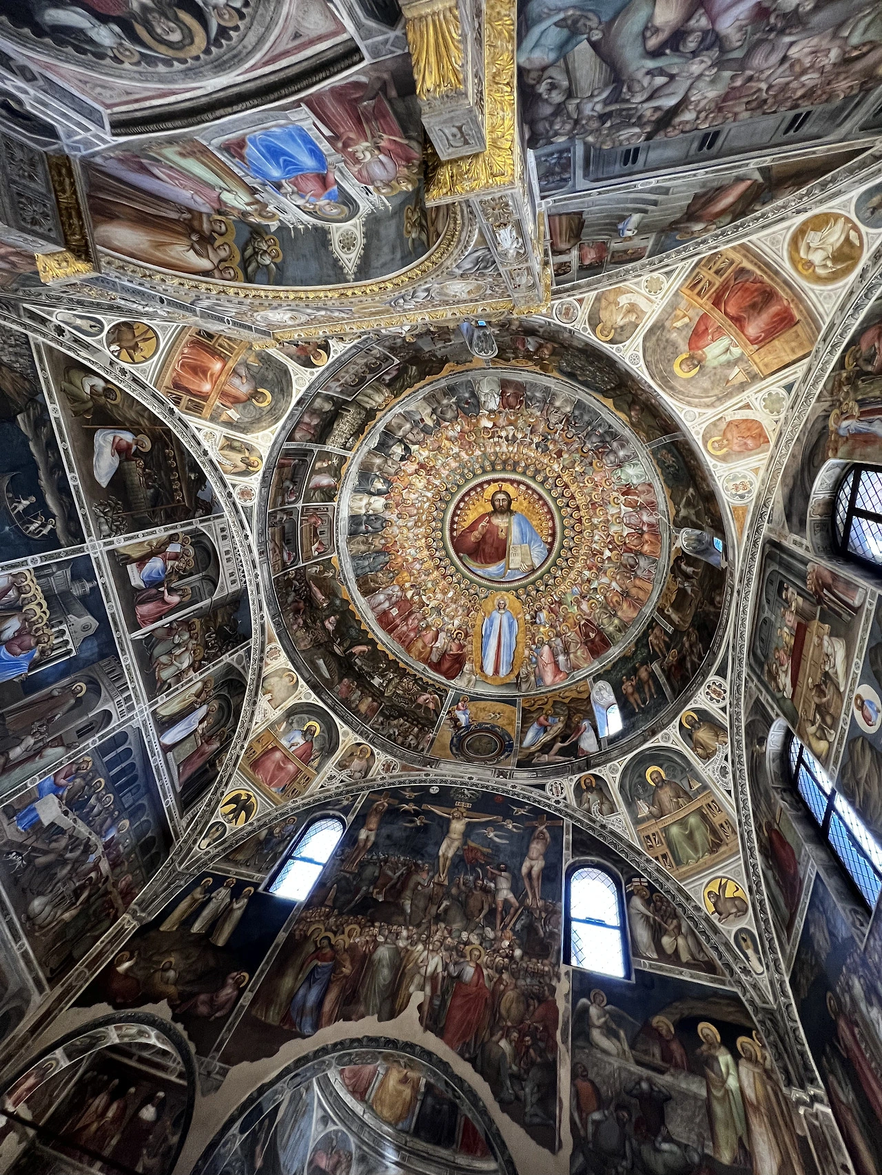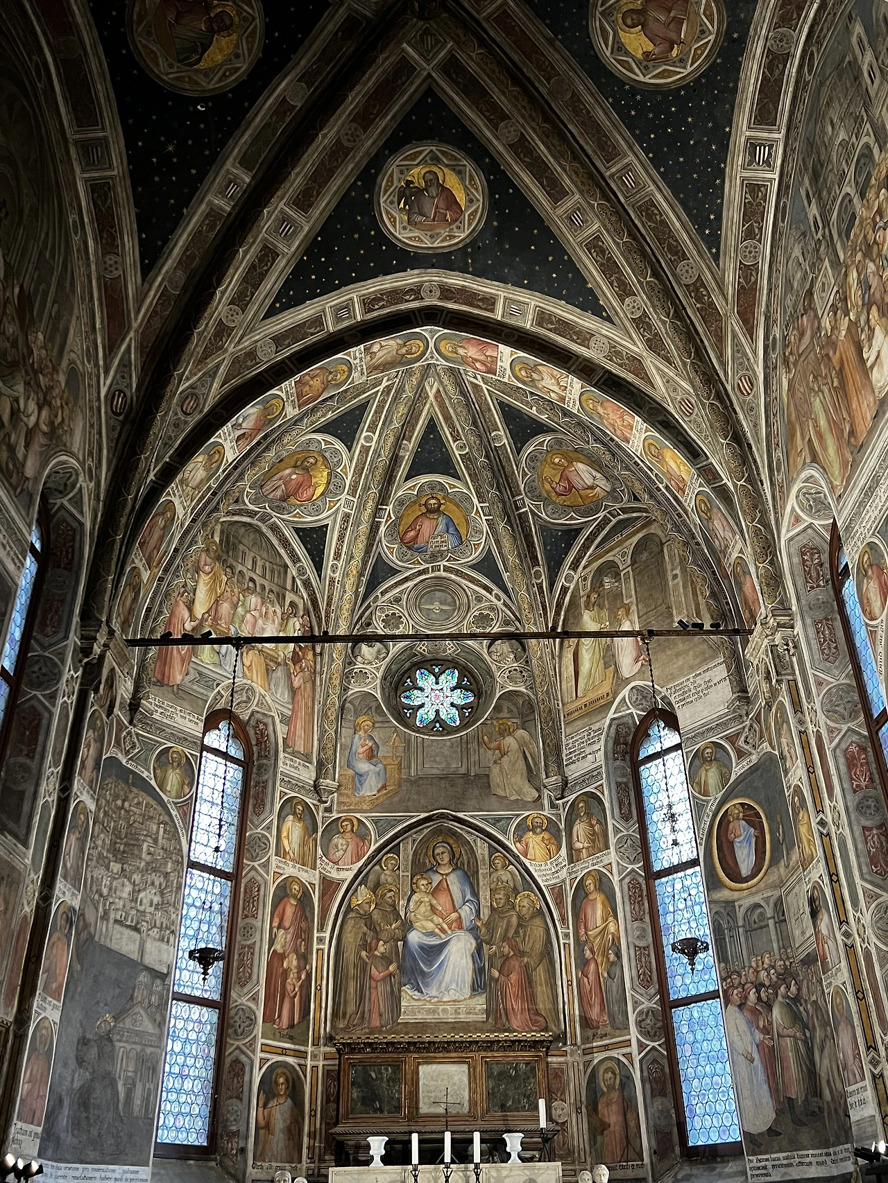 성당에 머물 수 있는 시간은 고작 15분에 불과했다. 그러나 고개를 들어 마주한 아쿠아마린색 천장은 시간이 소멸한 무한한 우주였다. 금빛 별들이 박힌 그 푸른 심연을 올려다보는 동안, 시간은 희미해지고 나는 14세기 이탈리아의 어느 밤하늘 속으로 영원히 침잠하는 착각에 빠졌다. 목이 아플 때까지 푸른 우주를 눈에 담아본다.