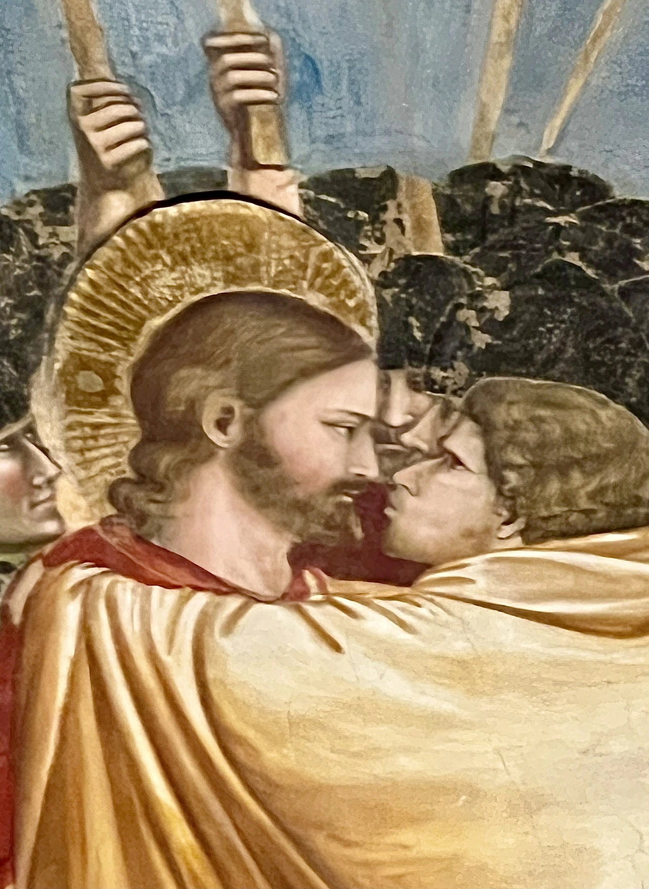 조토가 남긴 프레스코화 가운데 가장 강렬하게 남은 장면은 ㅔㅔ예수와 유다가 눈을 마주친 찰나였다. 유다의 입맞춤 직전, 두 사람의 눈은 불과 몇 센티미터밖에 떨어져 있지 않았다.