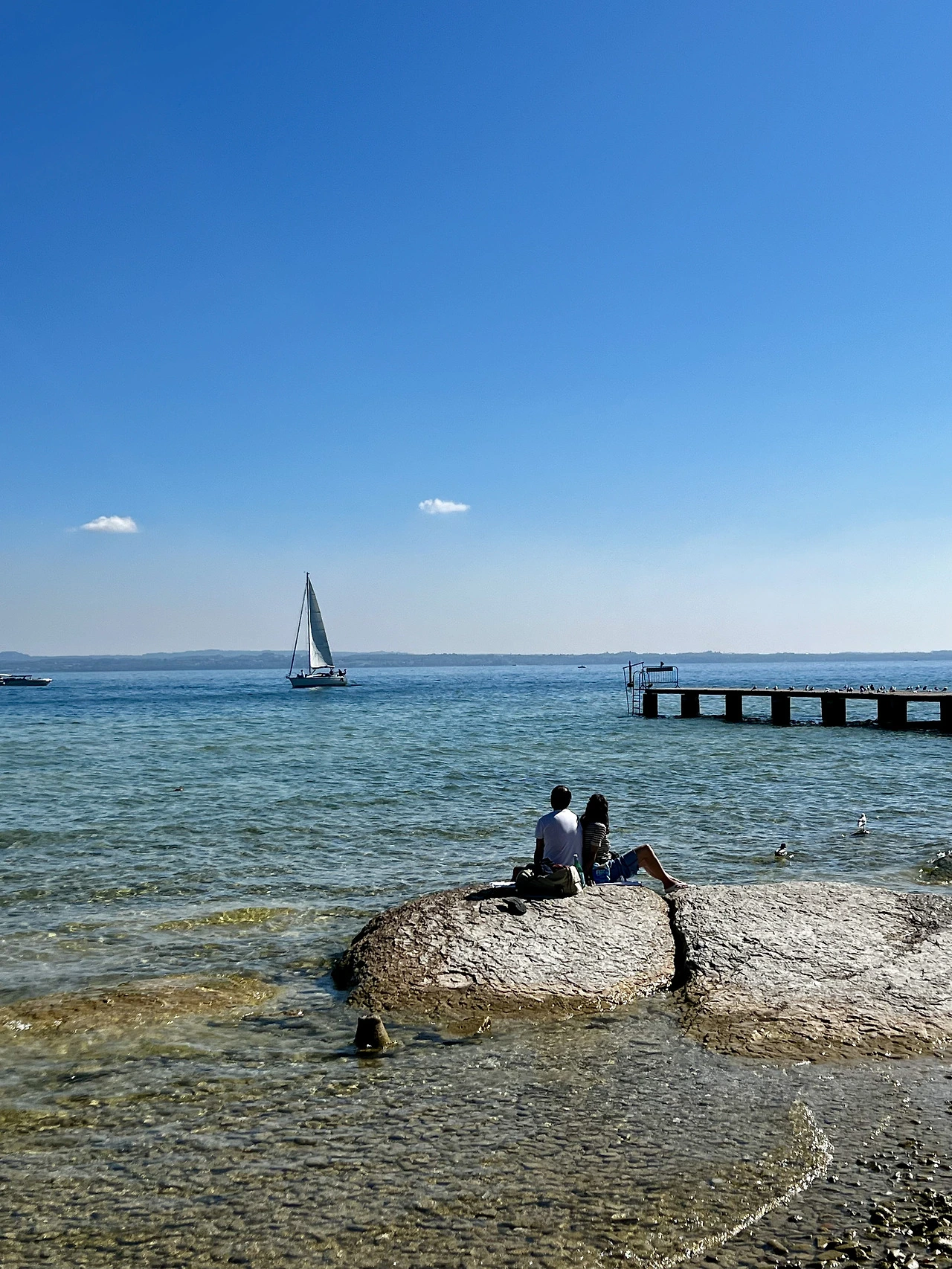 지도도, 앱도 열지 않고 그저 사람들의 흐름을 따라 걷는다. 온천으로도 유명한 토요일의 시르미오네 거리에는 활기가 넘쳤다. 중세 요새의 모습을 간직한 스칼리제라 성문 다리를 건너자, 예쁜 상점들과 탐스러운 꽃나무들이 반겼다. 문득 시야가 탁 트이며 바다 같은 호수가 나타났고, 나는 나도 모르게 그 푸른 품을 향해 달렸다.