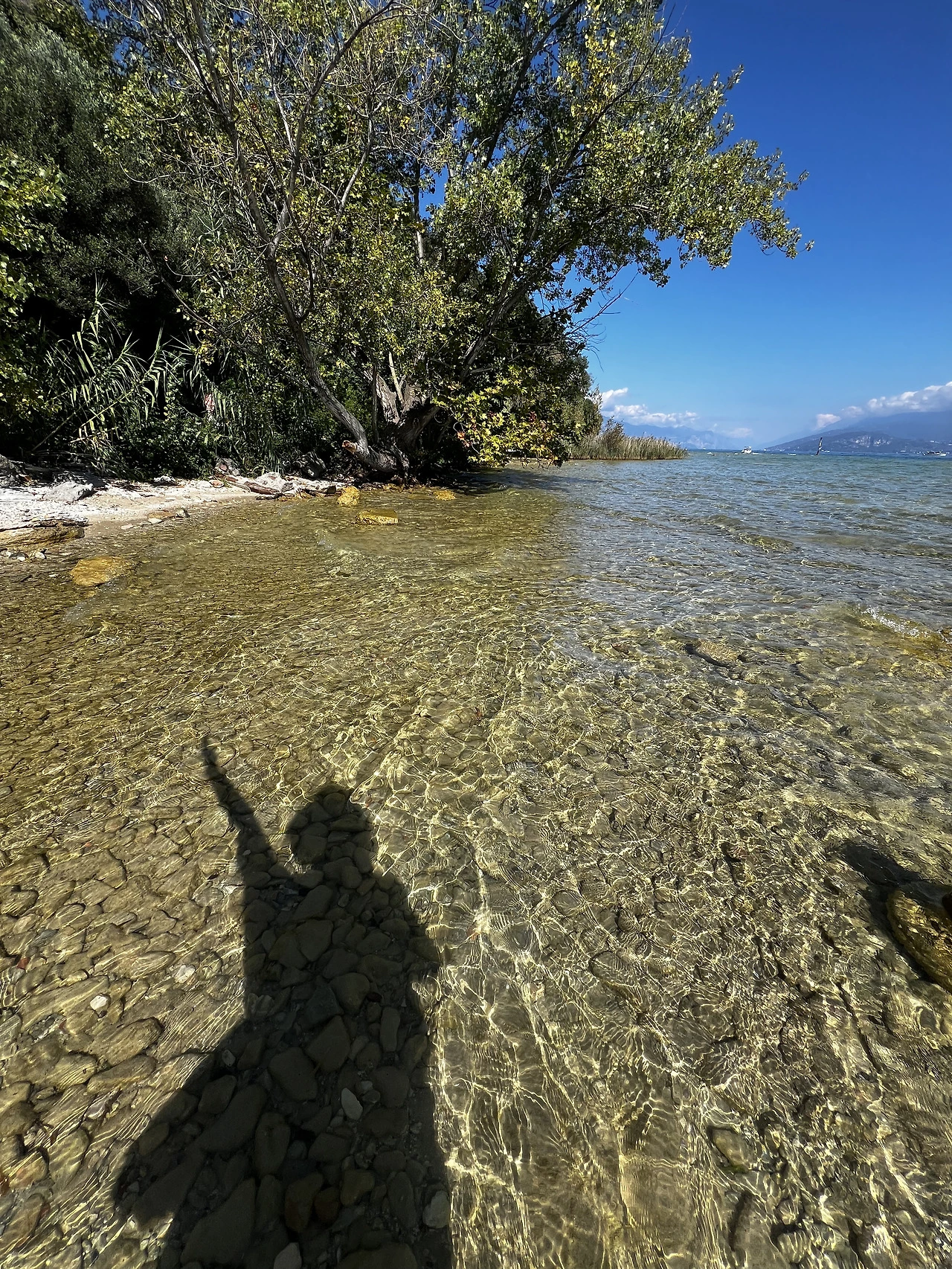 한적한 길을 걷다 보니 어느덧 바위너머 호수물이 찰랑였다. 시르미오네는 호수 쪽으로 육지가 툭 튀어나온 반도 같은 곳이다. 나는 지금 그 끝에 서있는 것 같았다. 길이 끊긴 지점, 내 앞을 걷던 검은 사냥개와 한 커플이 돌아서지 않고 서성였다. 호수물이 얕아 보이긴 해도, 젖지 않은 채로 건너갈 수는 없을 텐데. 반대편이 얼마나 깊어질지 알 수도 없었다.