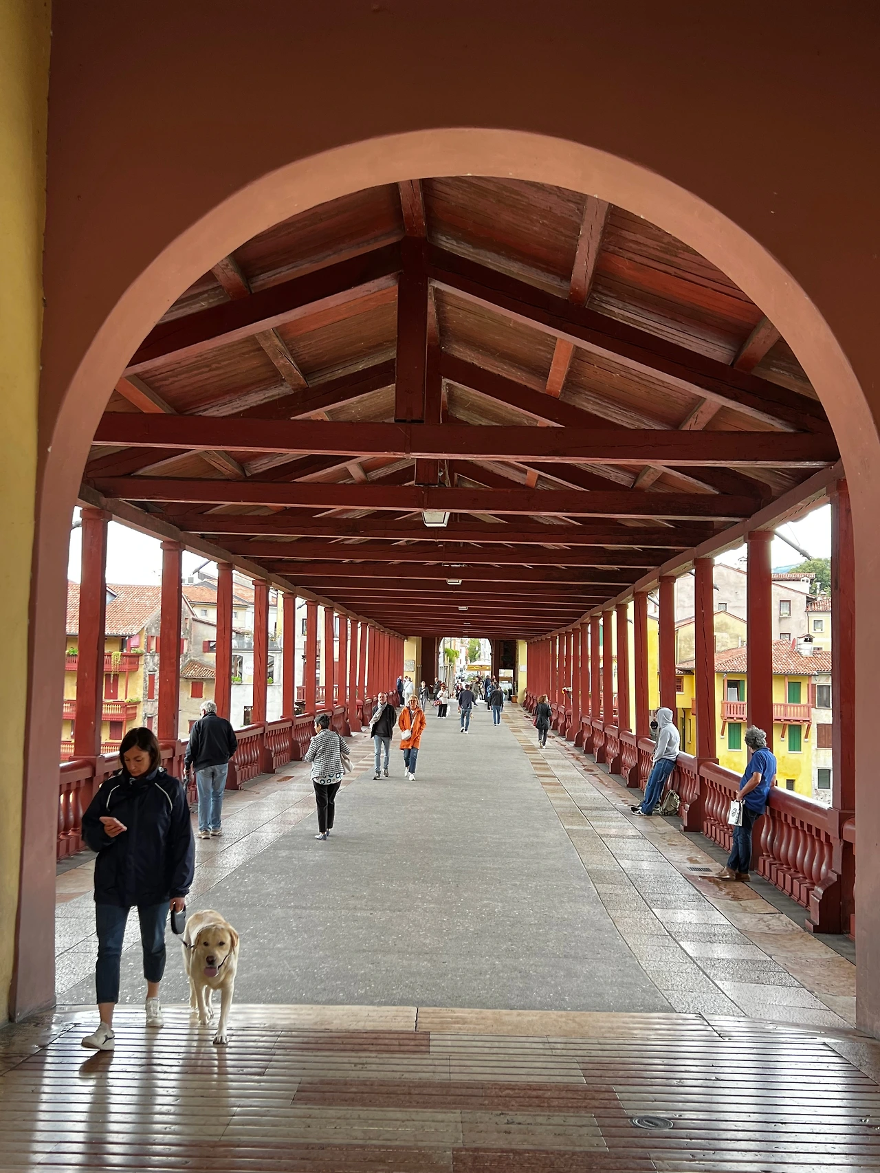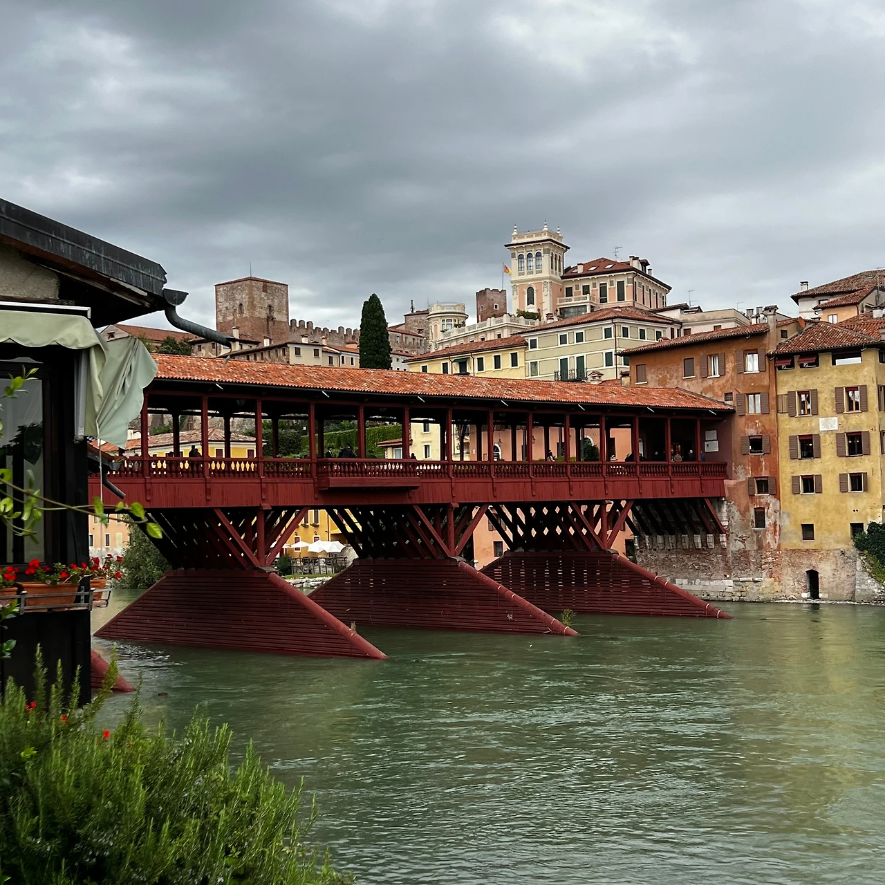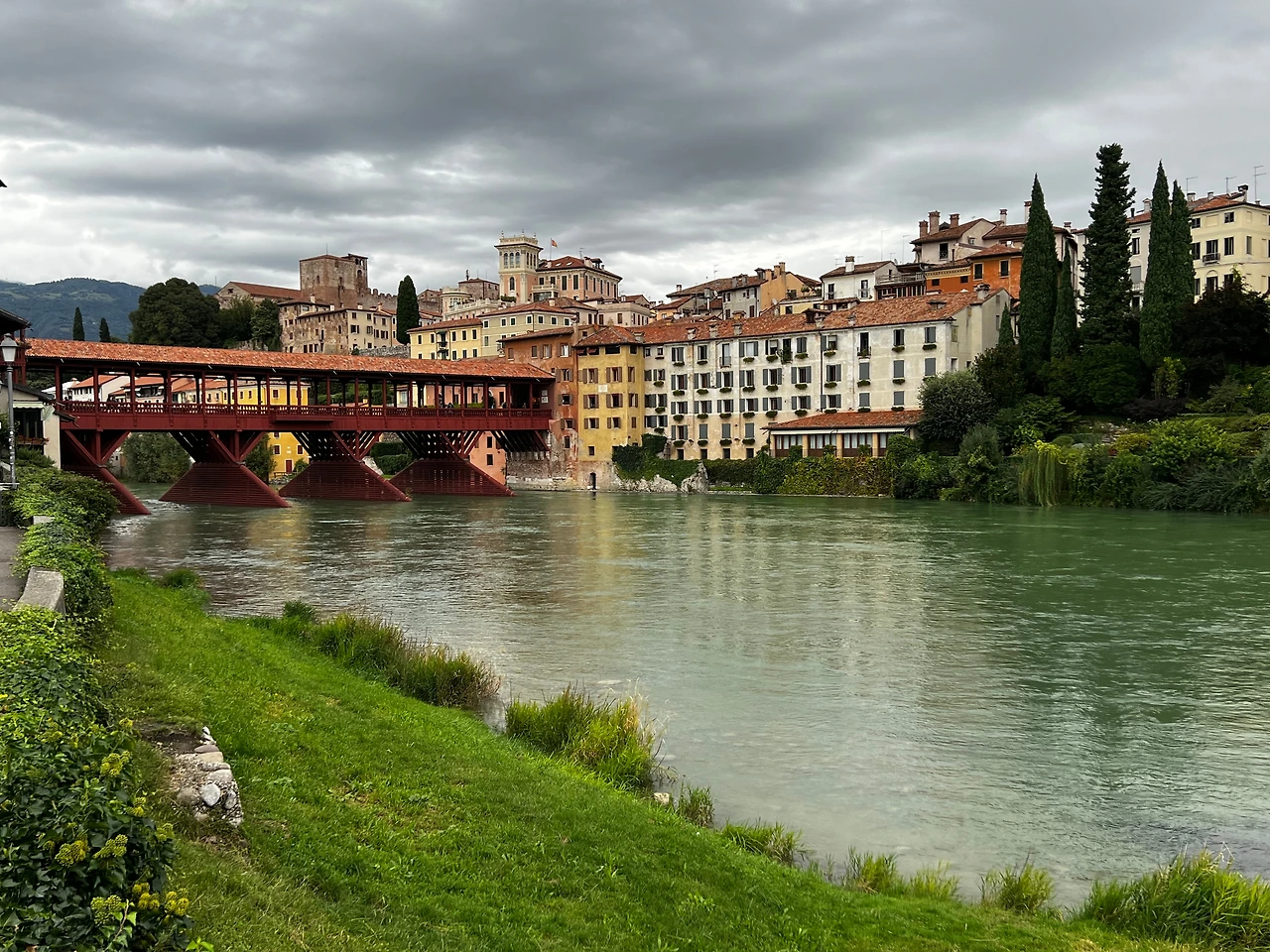 도시의 상징은 지붕 덮인 와인색 목조 다리인 '알피니 다리(Ponte degli Alpini)'다. 다리의 전경을 담고 싶은 욕심에 강가 바위 위로 올라갔다가 아찔한 순간을 맞았다. 비에 불어난 강물은 무섭게 소용돌이치고 있었다. 다행히 지나가던 신사의 매너 있는 손길 덕분에 무사히 내려올 수 있었다. 사진을 보고 엄지척을 했지만, 꾸지람이 동시에 담긴 그의 눈빛에 머쓱한 웃음을 지어야 했다.