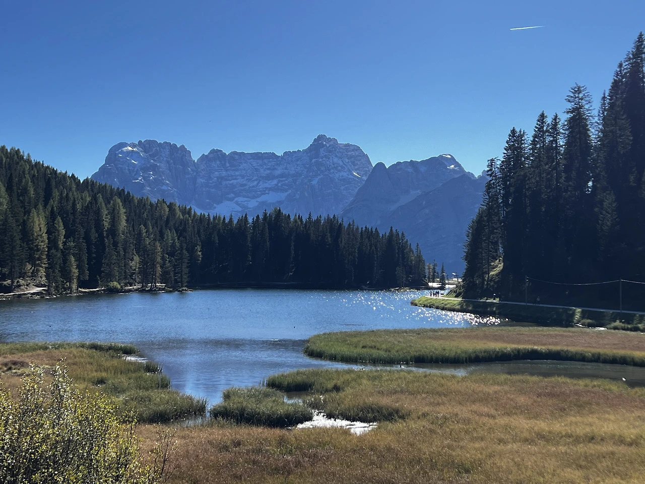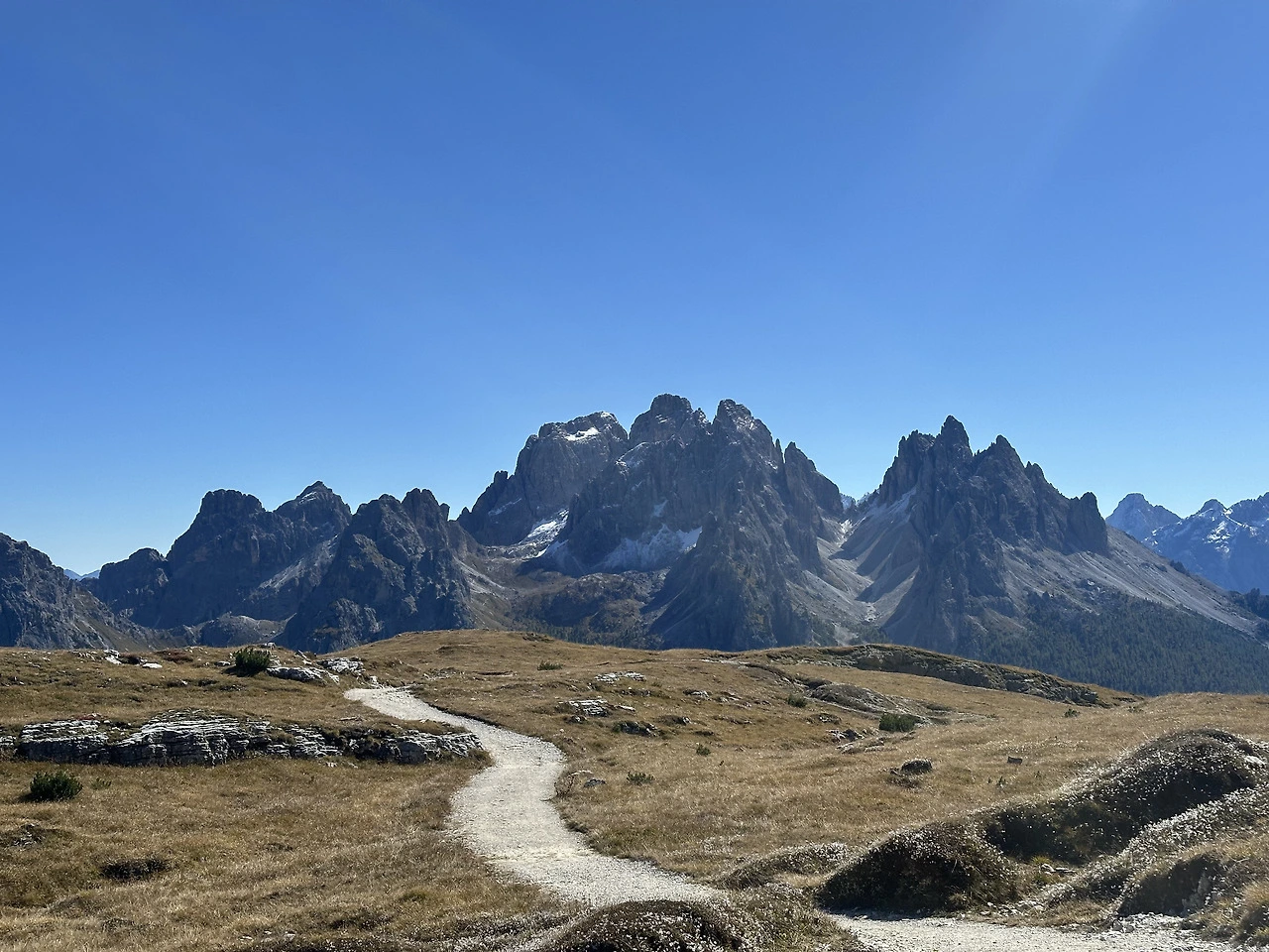 넓은 평원 위에 트레치메 봉우리들과 푸른 하늘. 호빗들이 나올 것 같은 멋진 협곡들.
