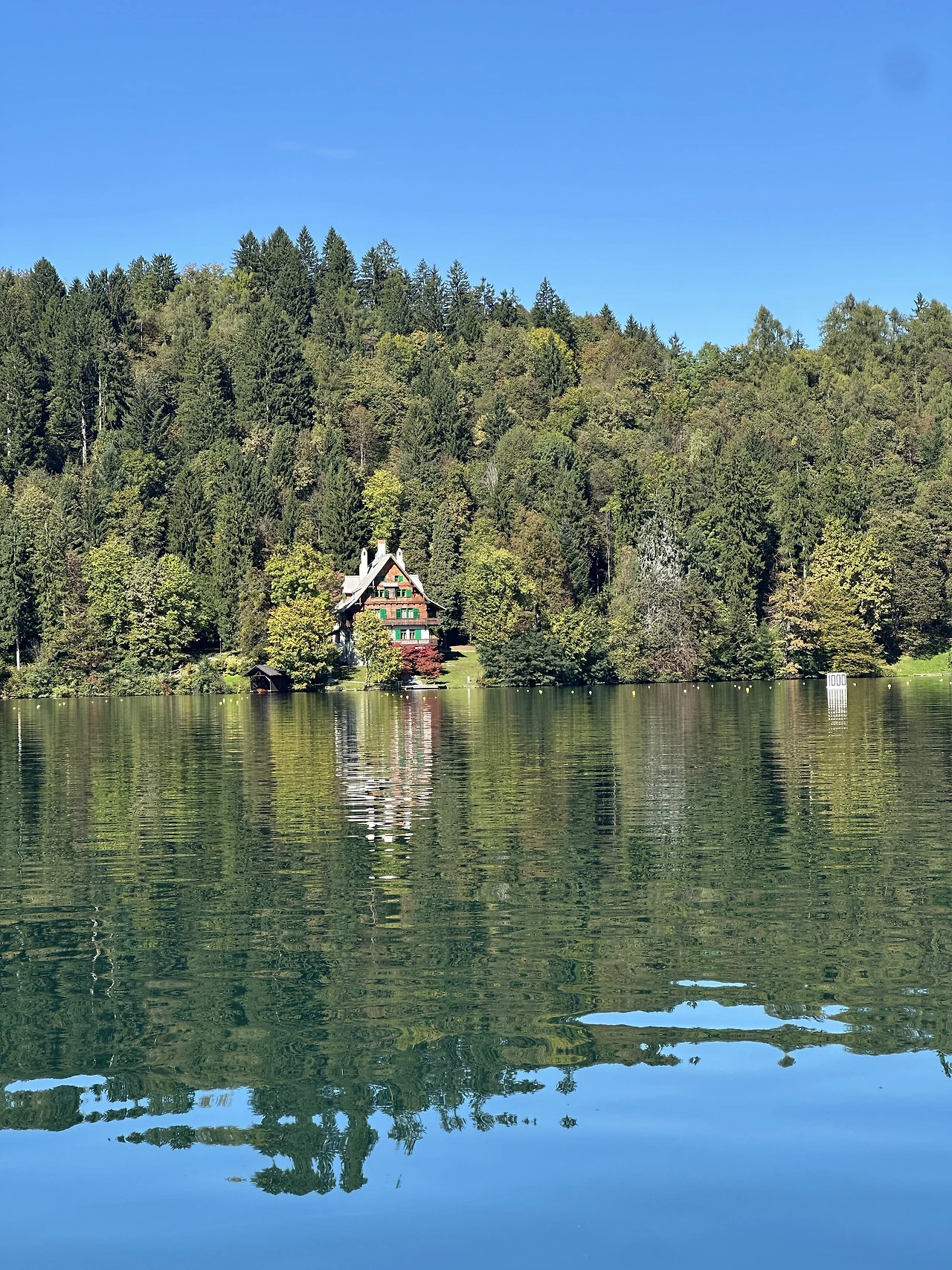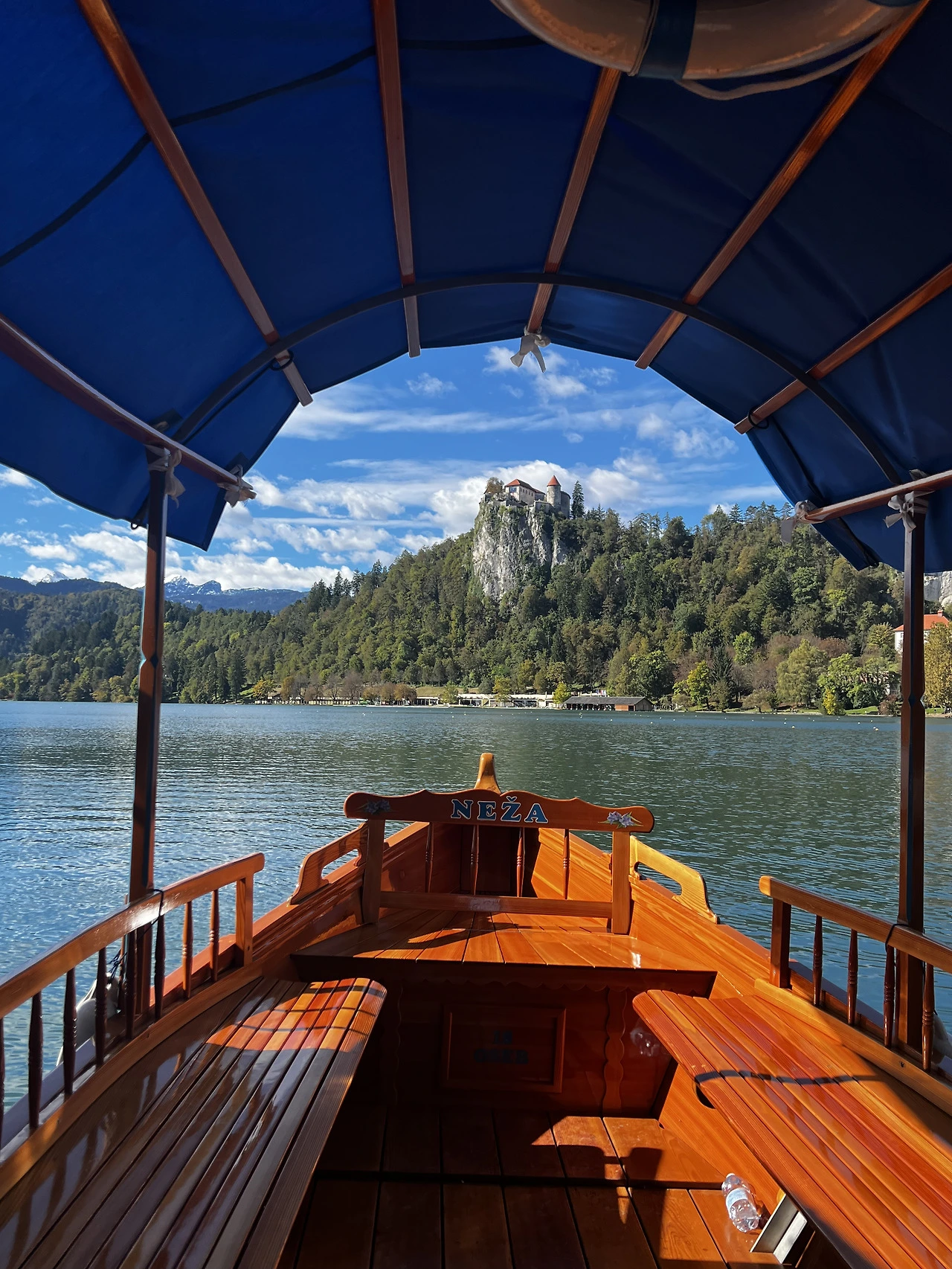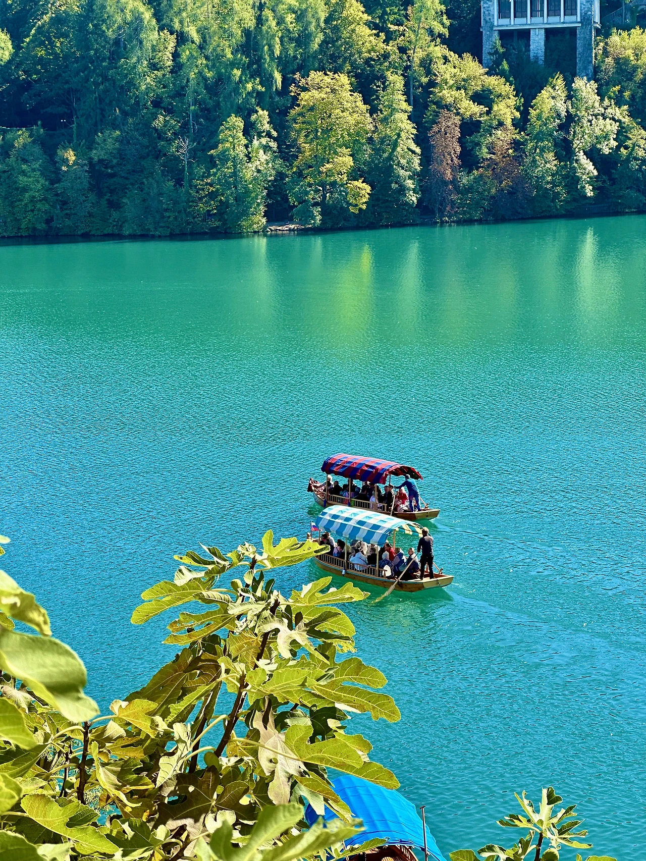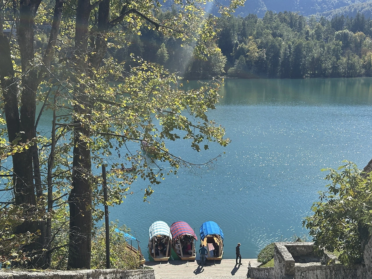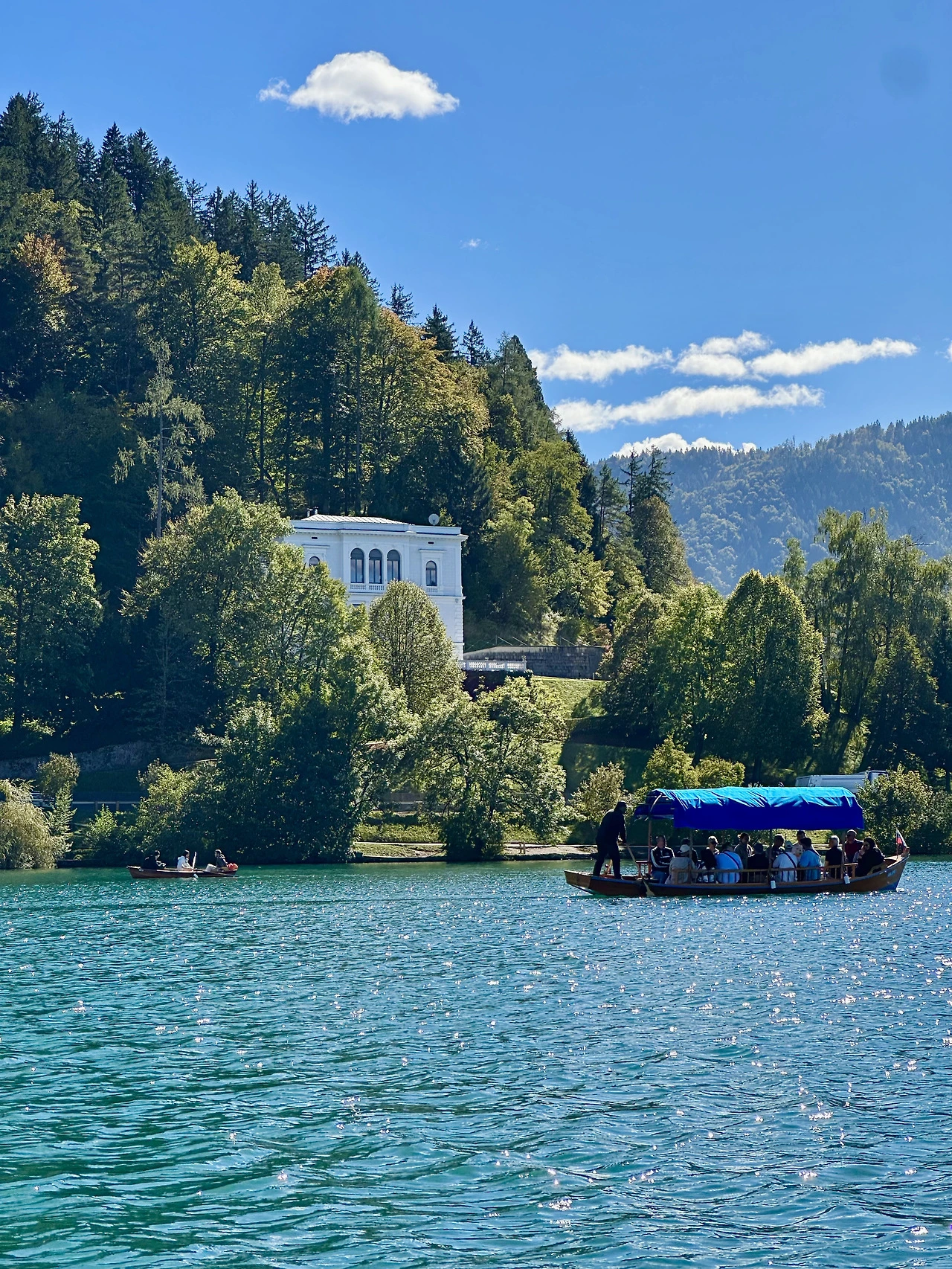 언덕 위 정류장에 내려 달려 내려가니, 거짓말처럼 초록 호수가 눈앞에 펼쳐졌다. 배도 고팠지만, 당일치기라 마음도 급해졌다. 호숫가를 제일 먼저 둘러보았다. 선착장에는 사람들을 제법 태운 전통 나룻배, 플레트나(Pletna)가 기다리고 있었다. 우리가 배에 오르자 먼저 타고 있던 이들이 환호하며 박수를 보냈다. 바로 출발인가 싶었는데 뱃사공이 고개를 저었다. 규칙 상, 15명이 넘어야 배를 띄울 수 있단다.