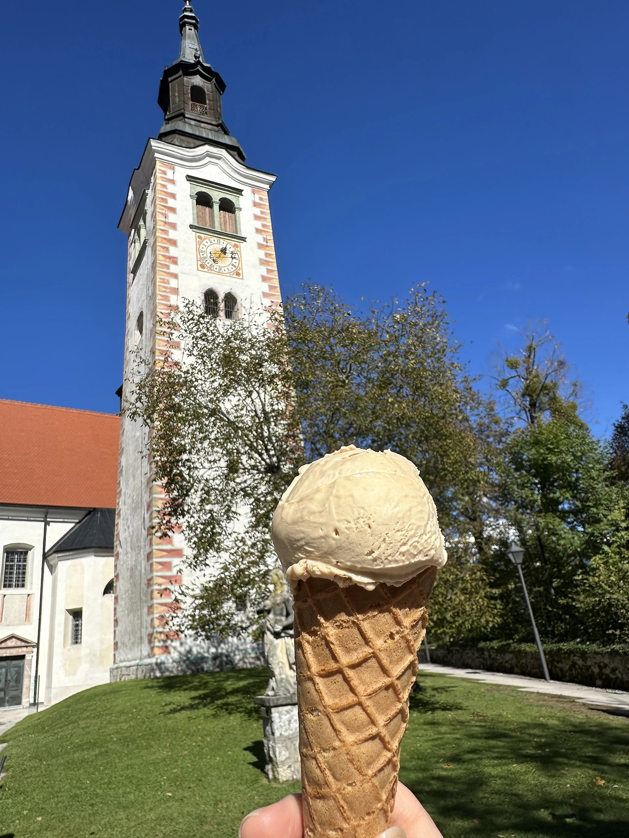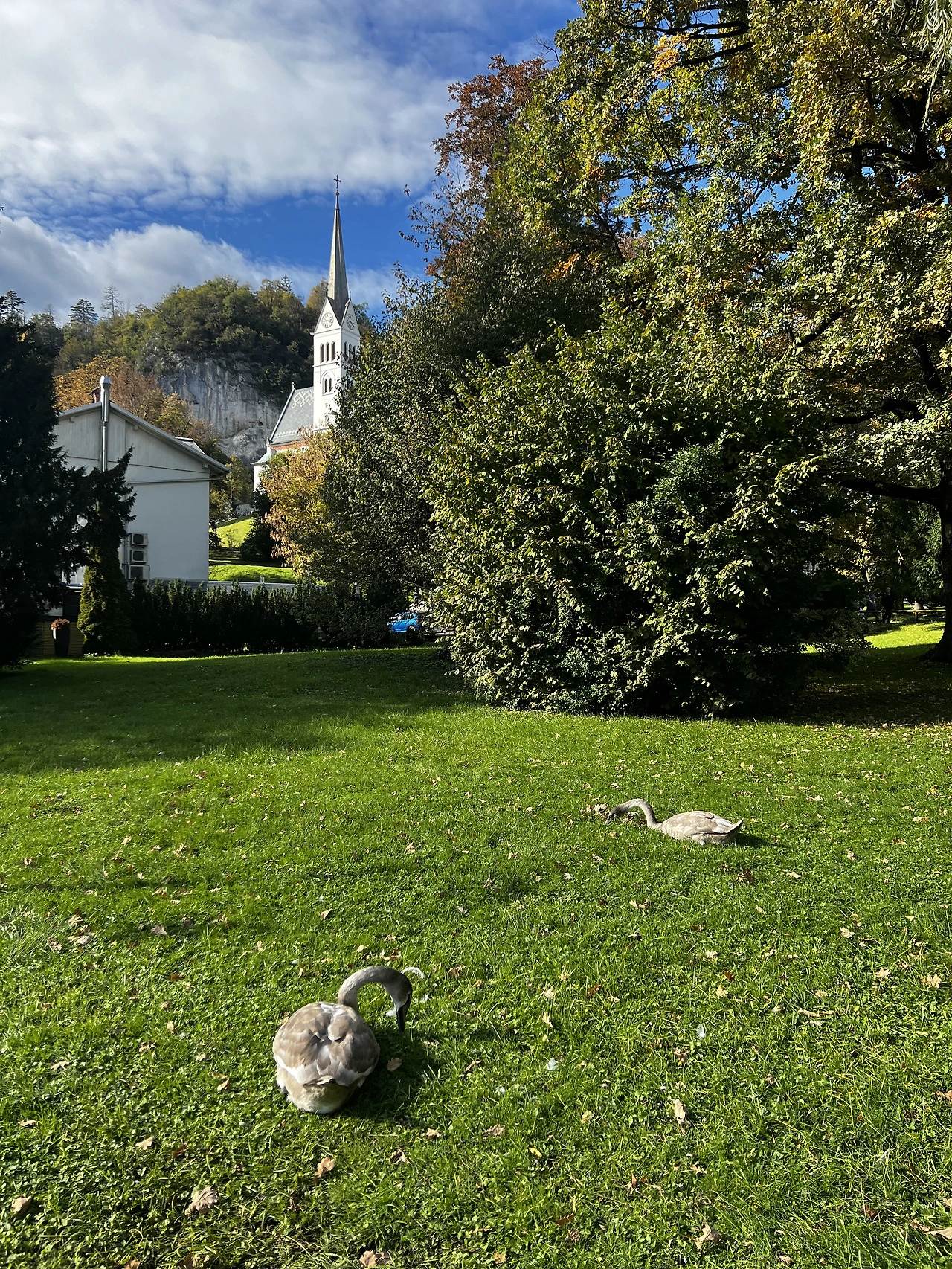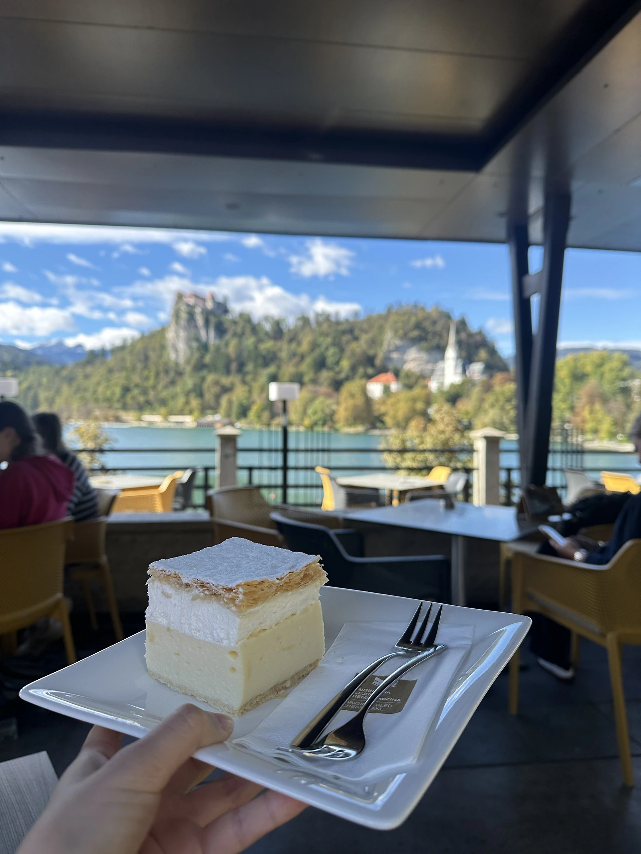 우리는 블레드의 명물, 크렘나 레지나 케이크와 커피를 마시고 호숫가를 산책했다. 오리들, 낚시하는 사람들을 보며 유유자적 산책…. 시간이 부족해 블레드 성을 오르지 못했지만, 호숫가의 시간도 충분히 좋았다.