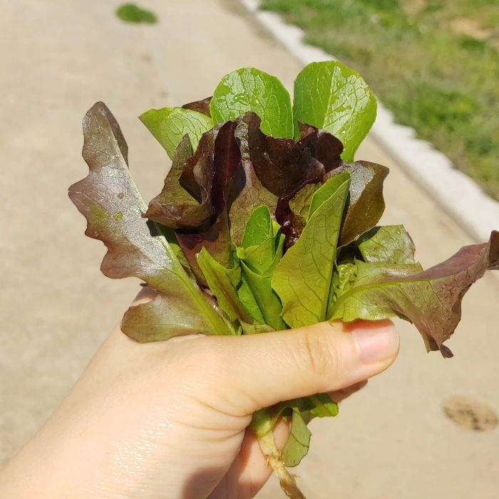 첫 수확, 상추 한 주먹