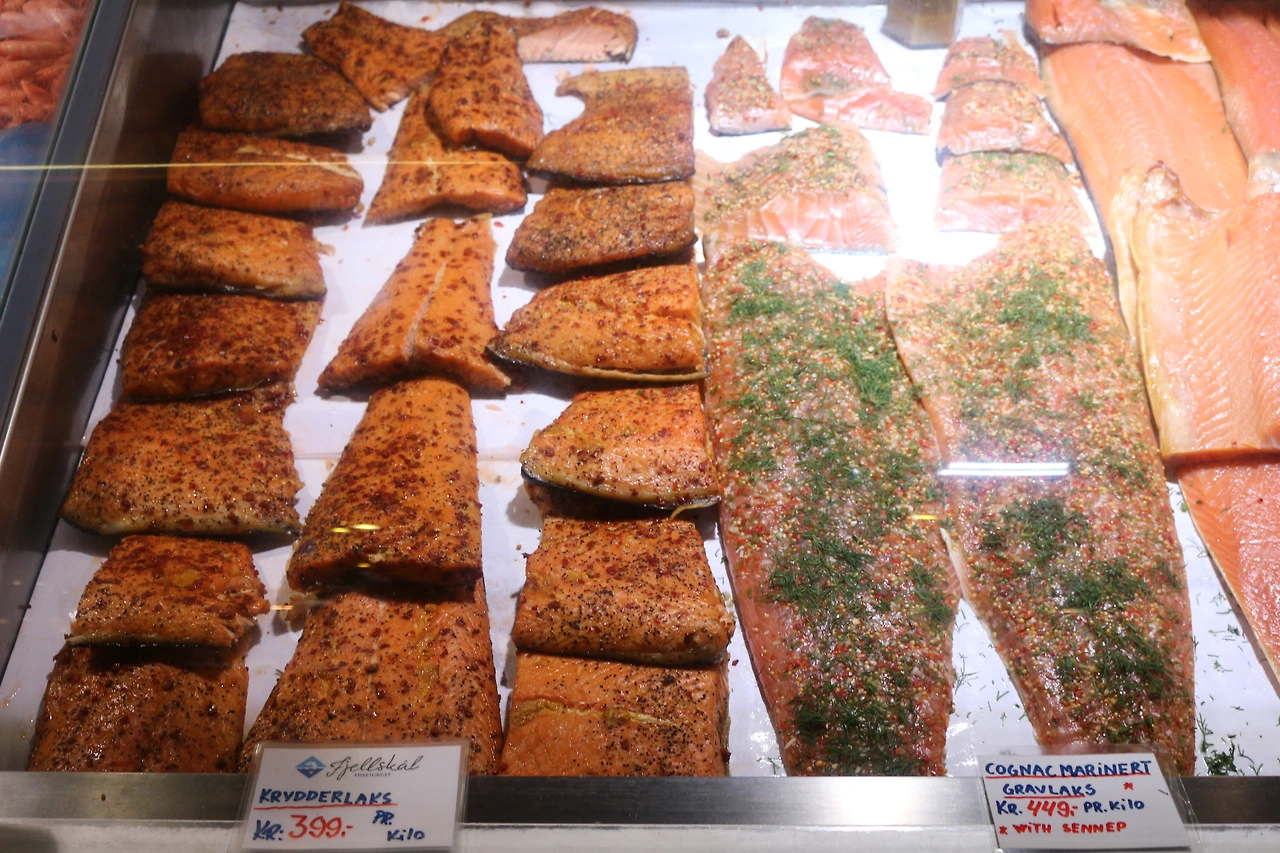 베르겐 어시장에서 먹은 훈제연어가 너무 맛있어서 매일 사먹었는데 생선집 아줌마랑 친해졌다.
