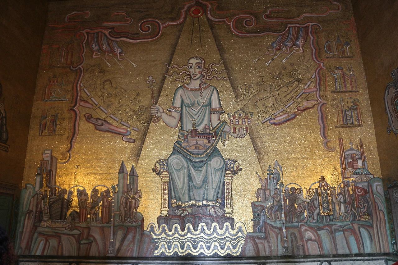 골든홀은 화려하고 반짝거리는 게 예뻤다. 세계의 중심이 여기 스톡홀름이라는 벽화의 의미도 듣고